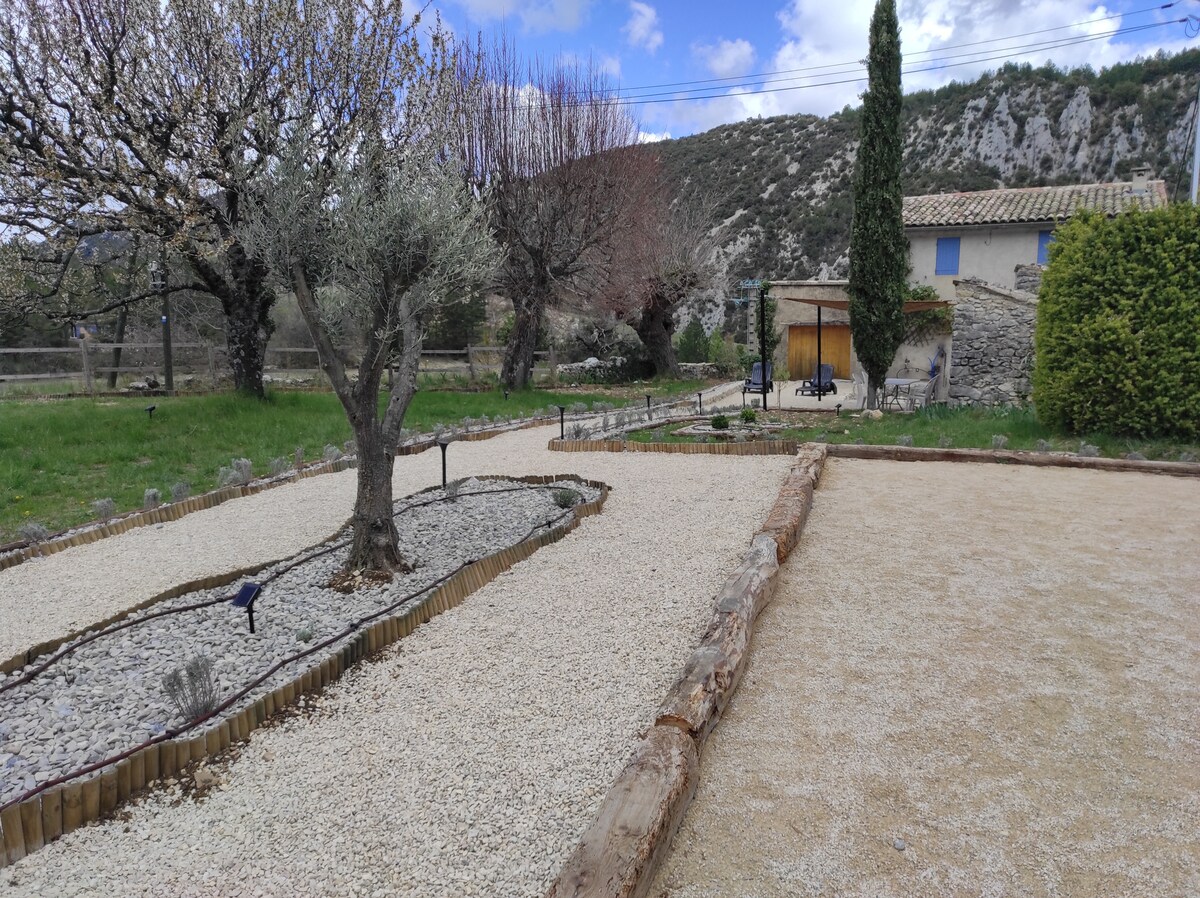 Esta bonita cabaña típica respira autenticidad y encanto provenzal: interior acogedor, sala de estar luminosa en un gran jardín. Relájese a la sombra del tilo o junto al fuego. Amigos deportistas, ¡también aquí están! Comercios a 5 minutos a pie. ¡Cerca de los sitios de escalada, la piscina y los restaurantes y el cine! Buis es un bonito pueblo auténtico en un entorno de montaña y olivos a orillas del Ouvèze