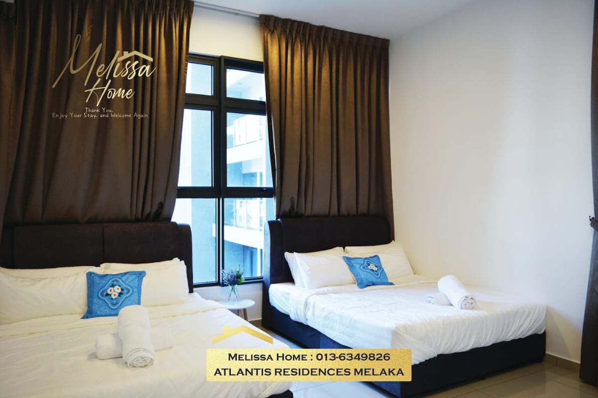 Aquí se encuentra el turismo más cercano, A 3 minutos en coche de Jonker Walk. A 9 minutos en coche de A Famosa. A 7 minutos en coche de la Casa Roja. Espacio: 1 dormitorio, 1 cama tamaño queen con baño. 1 dormitorio con 1 cama tamaño queen. 1 dormitorio con 1 cama tamaño queen y 1 colchón plegable Total de 2 baños. Espacio público: . Piscina .Gimnasio .Parque infantil Seguridad las 24 horas Otros aspectos destacables .SOLO se proporcionarán dos tarjetas de acceso (Se cobrarán 200 RM si se pierde la tarjeta de acceso) .Fumar en el condominio conllevará un cargo de 500 RM como penalización. .Proporciona 1 plaza de aparcamiento.