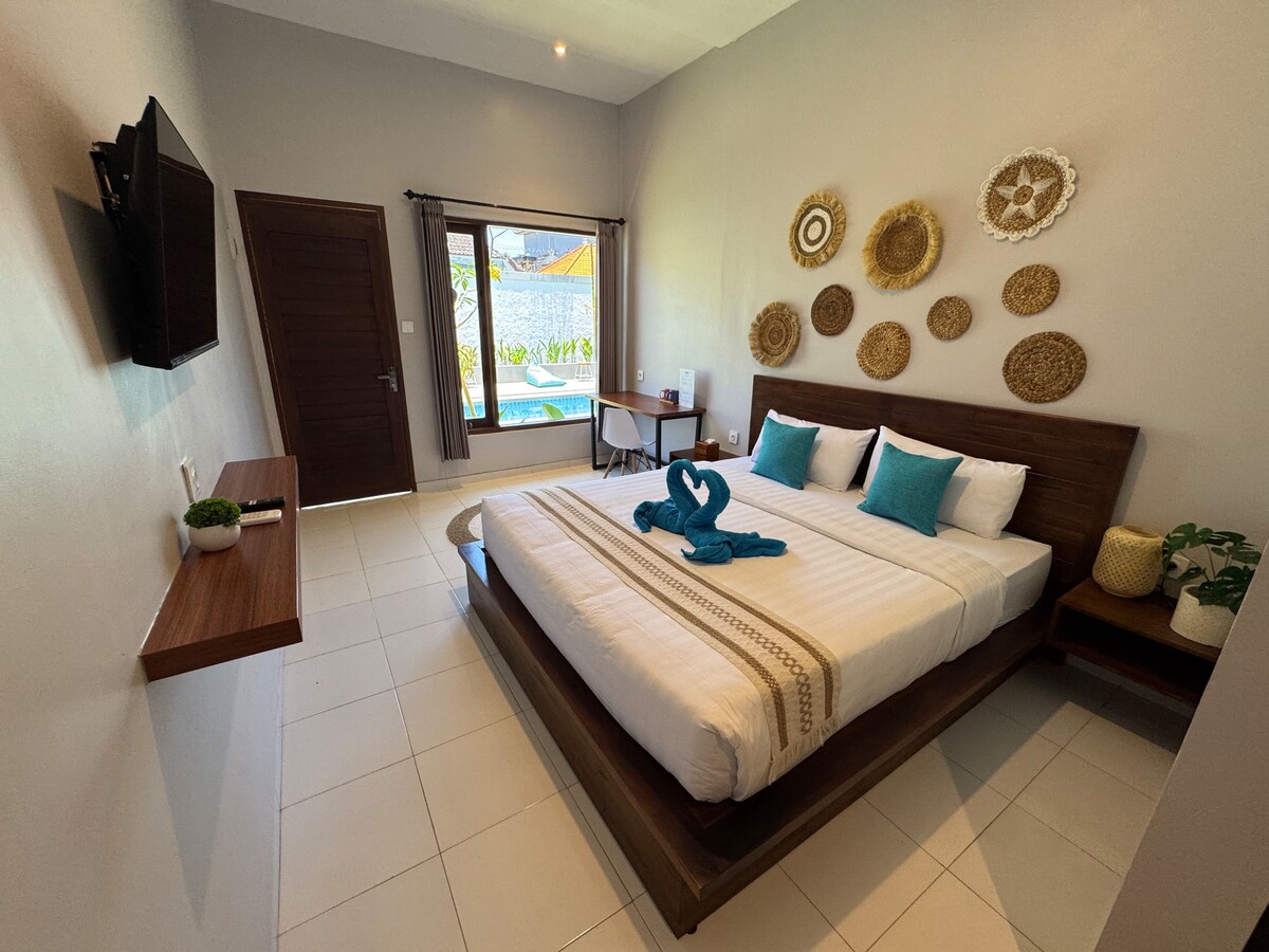 Discover a modern and comfortable stay in a peaceful setting, featuring spacious rooms with private terraces and a refreshing swimming pool. Perfectly located just minutes away from Bali’s most iconic destinations, Dreamland Beach, Melasti Beach, and GWK Cultural Park. Enjoy the convenience of high-speed WiFi for work or leisure, and relax with peace of mind thanks to 24-hour security and CCTV surveillance. Whether you’re here for a holiday gate away or stay longer , we'd love to host you!