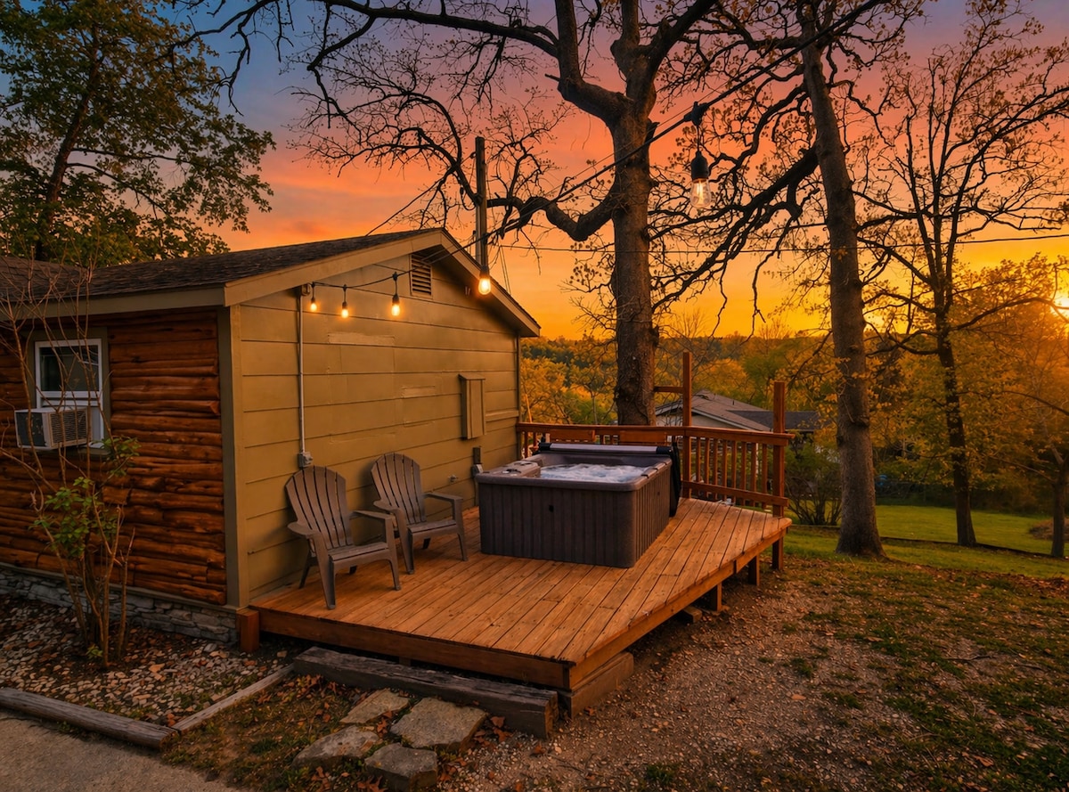 Bienvenido a la American Ice House, relájate y desconecta en el jacuzzi para dos personas en una de las 2 cubiertas después de un día en el lago, ubicado a 1 minuto de la propiedad. Nueva parrilla de gas Weber. Hay mucha vida silvestre para observar desde la cubierta delantera en nuestros cómodos balancines de madera. Hay mucho estacionamiento para tu caravana, barco o juguetes. También ofrecemos hielo en bolsas ubicado en el sitio a mitad de precio. ¡Te mereces esto, solo ve por ello!