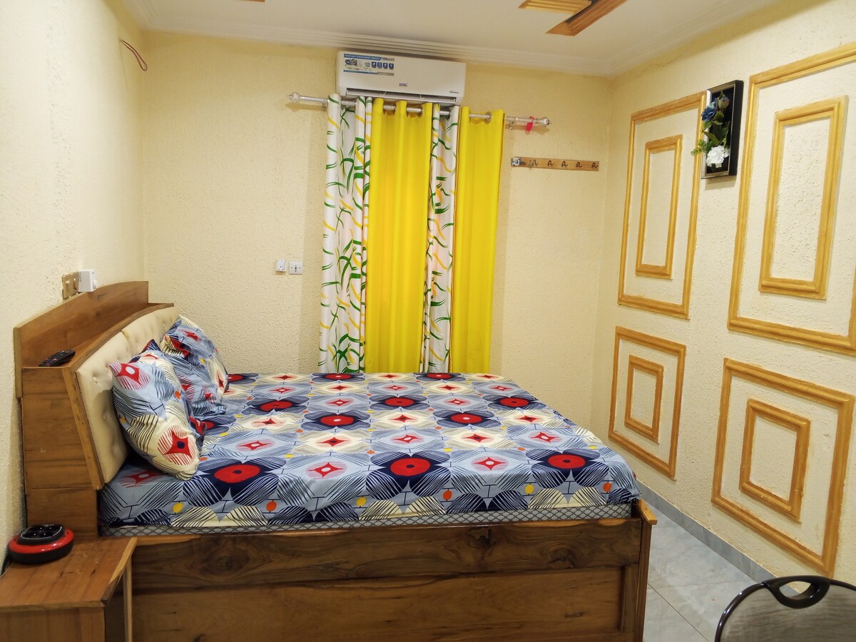Dans un cadre cosy et Chaleureux chambre privée, bien équipée et climatisée, idéalement située à la zone du bois, dans un environnement calme discret et sécurisé avec wifi haut débit. Vous vous sentirez chez vous. Service de restauration et livraison disponible.