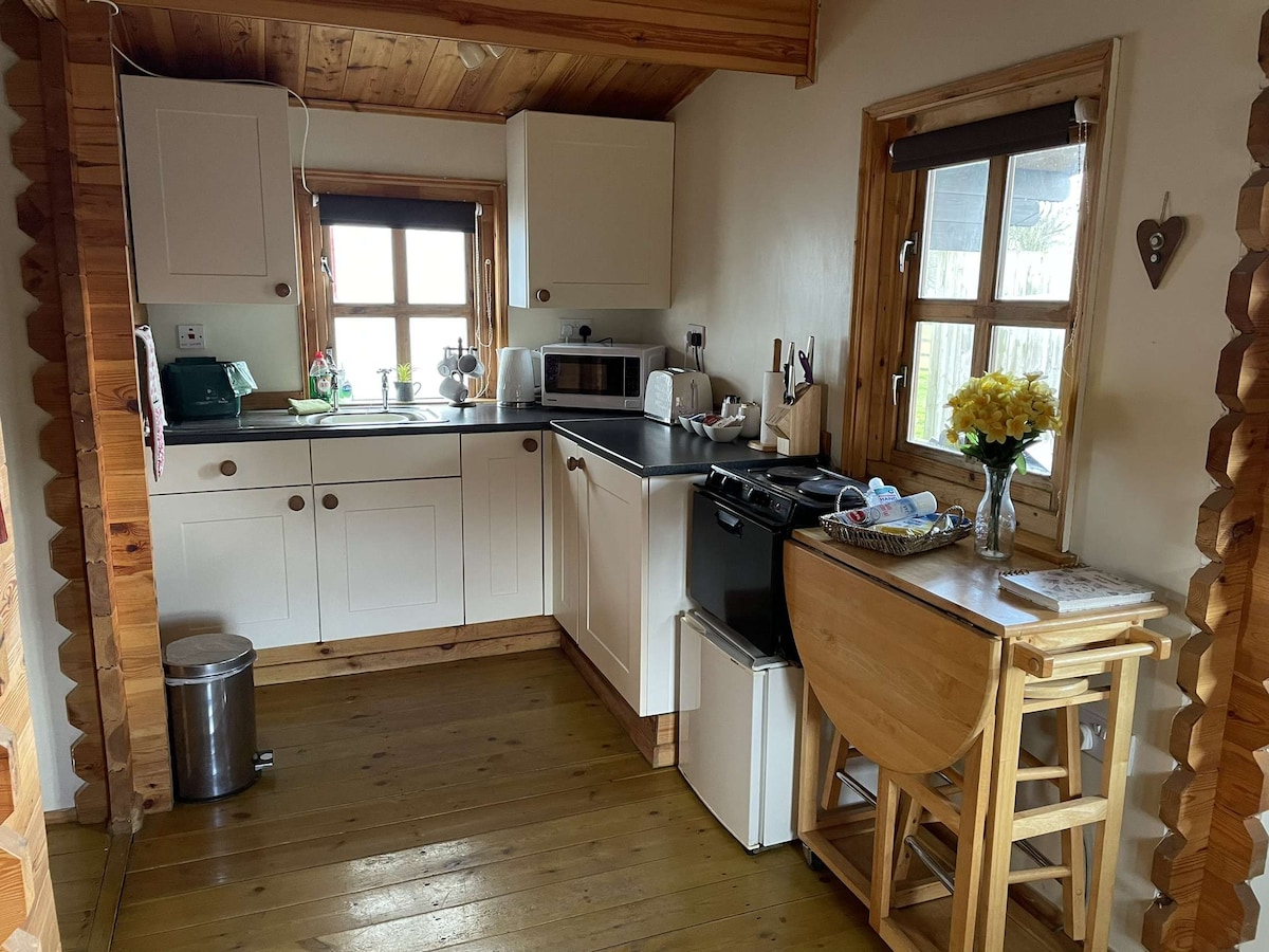 Configuración con todo lo que puedas necesitar, incluyendo ropa de cama y toallas. Con dos dormitorios dobles, baño y una gran sala de estar, es perfecto para una escapada tranquila o un lugar para aventuras en familia. Cocina totalmente equipada que incluye nevera/congelador, freidora de aire, microondas, acogedora estufa de leña y un almacén de leña surtido. Cena dentro o fuera en la terraza; se proporcionan mesas y sillas y una barbacoa privada en la zona del patio con asientos para esas noches de verano hasta tarde contemplando las estrellas con una buena copa de vino.