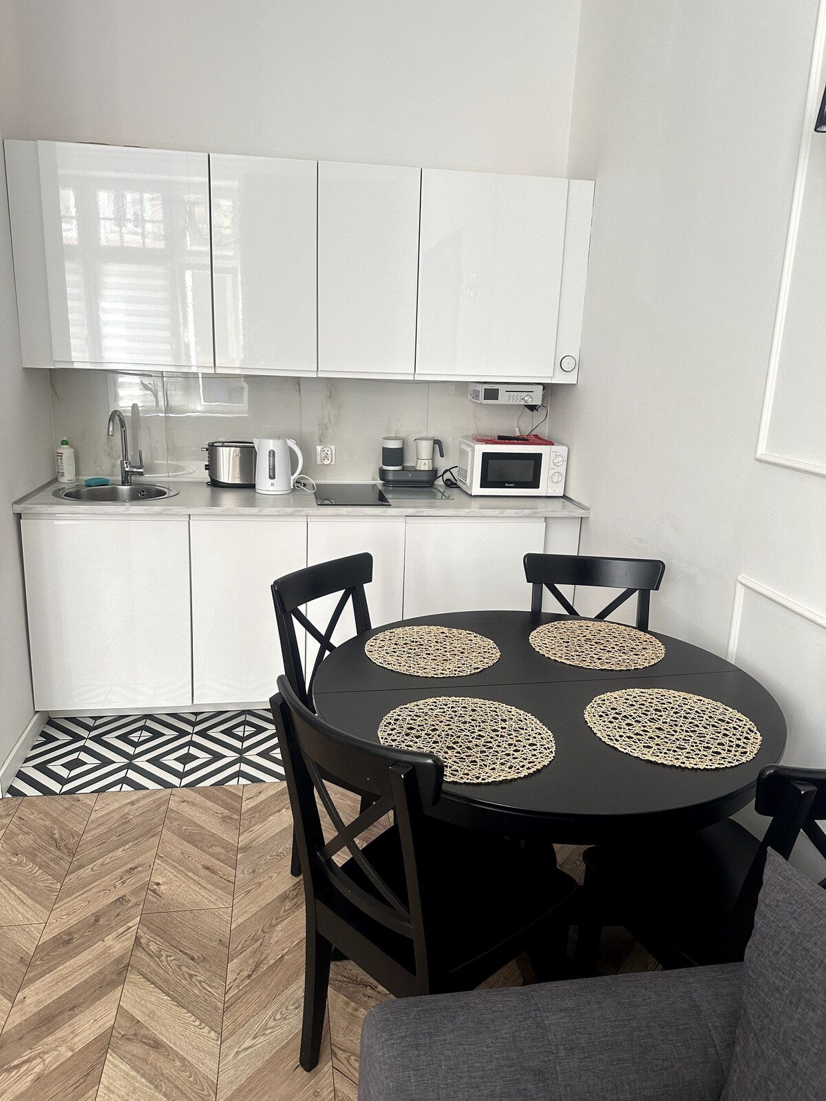 Un elegante apartamento en el Distrito de la Música, en el mismo centro de la ciudad. En las inmediaciones: Academia de Música, Teatro, parques, restaurantes, cafés. Hay un apartamento entero que consta de una cocina totalmente equipada, una amplia habitación con una cómoda cama doble y un sofá cama, un baño y un gran balcón cubierto con un lugar para relajarse. Situado en la primera planta de una casa de vecinos, el balcón del patio trasero ofrece paz y relajación (sin el ajetreo y el bullicio).