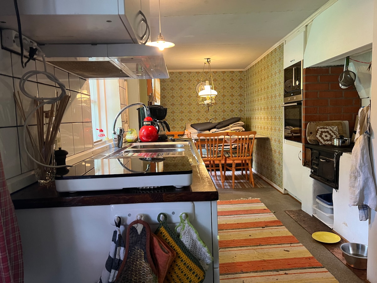 Vive de forma acogedora y tranquila en una antigua casa de madera del siglo XIX. La ubicación es rural, con animales y naturaleza justo al lado de la puerta, pero al mismo tiempo cerca de la ciudad, restaurantes, entretenimiento, compras y playa/baño. Aquí vivirás tranquilo y espacioso en unos 120 metros cuadrados con 2 dormitorios, cocina, amplio salón con sofá, TV y comedor y baño con inodoro, ducha, lavadora y secadora. Junto a la casa hay un patio frondoso y privado con parrilla justo al lado de los pastos con ovejas y caballos. Puedes aparcar el coche justo fuera.