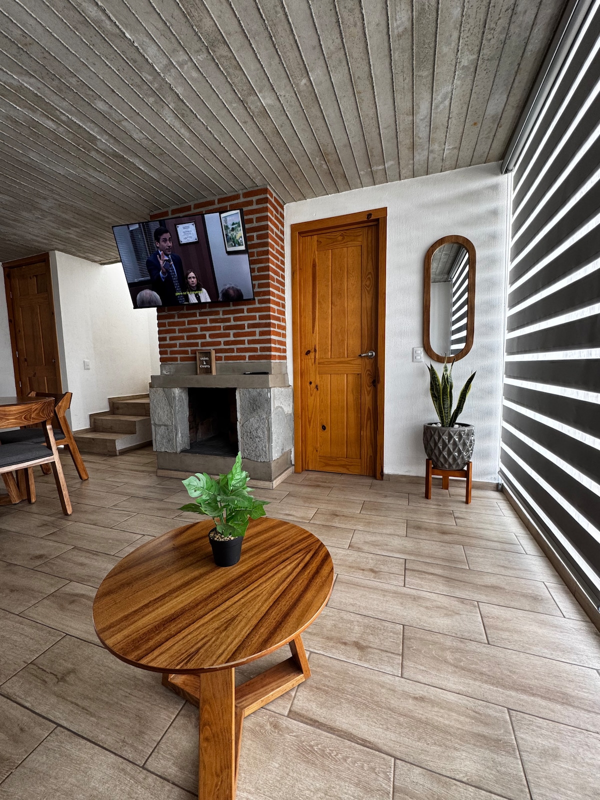 Relájate en este espacio tan tranquilo y elegante, Disfruta del encantador entorno de esta romántica Cabaña Prieta. Se encuentra ubicado a 5 km de la plaza principal, esta rodeada de enormes pinos, cuenta con acabados de lujo, Cocina equipada, Jacuzzi, Terraza con vista Panoramica, TV con sistema Dish. Todo lo necesario para que pases un agradable noche con tu pareja en la naturaleza.