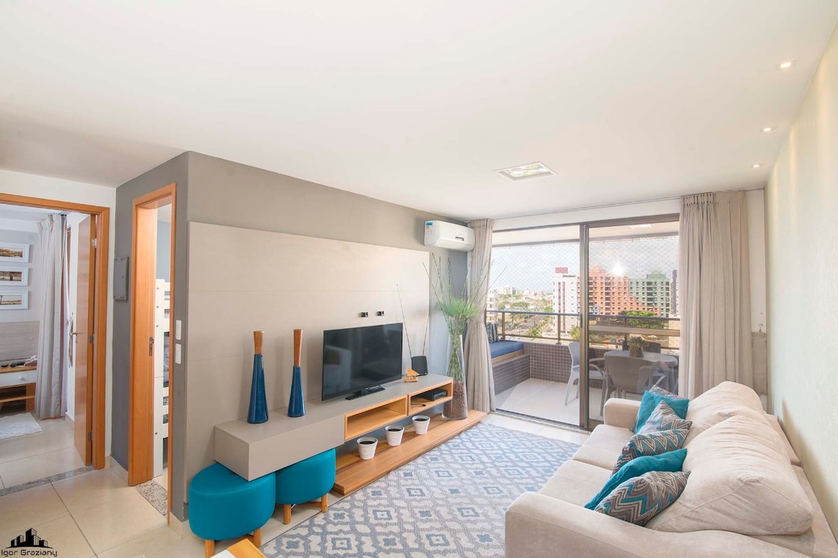 Nuevo piso de alta gama, en la arena, en el edificio Aquamaris Setai, un lujoso desarrollo en el barrio de Bessa. Para ocio o trabajo, una estructura completa con Wi-Fi en todas las áreas y junto al mar. El apartamento tiene una cama tamaño queen y una cama individual, cocina completa, purificador de agua, TV inteligente de 50", sábanas de cama y baño, Internet Wi-Fi de alta velocidad, aire acondicionado, área al aire libre con bañera con calefacción, cocina y parrilla eléctrica. Garaje cubierto, gratuito y giratorio.