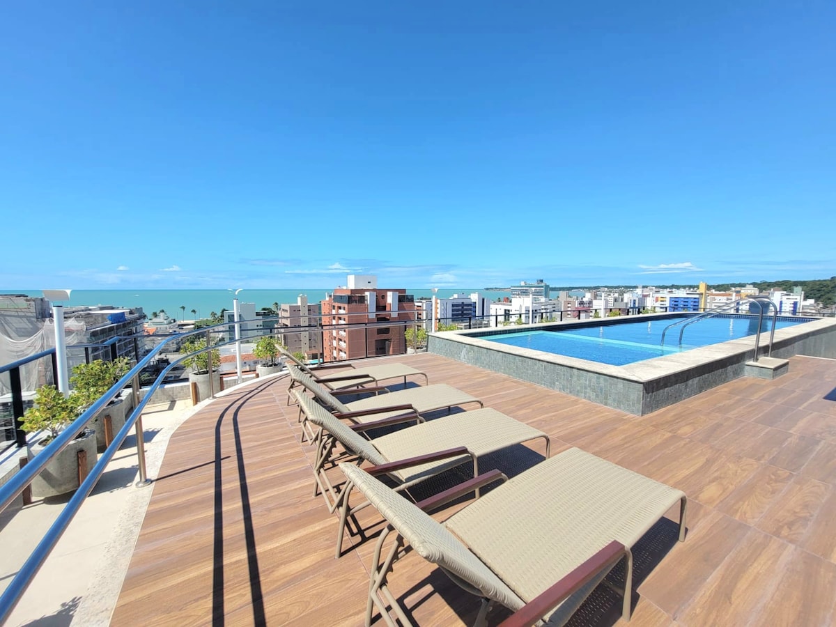 ¡Relájese en este lugar único y tranquilo! Loft nuevo, recién amueblado, frente al mar de Bessa, perfecto para familias pequeñas (hasta 4 personas) o para viajeros individuales. Está dividido de la siguiente manera: ocio privado con jacuzzi y vistas privilegiadas al mar, suite doble con smart TV y estación de trabajo, cocina completa con utensilios principales integrados con la sala de estar que cuenta con un sofá cama, smart TV y una hermosa vista del primer amanecer de las Américas.