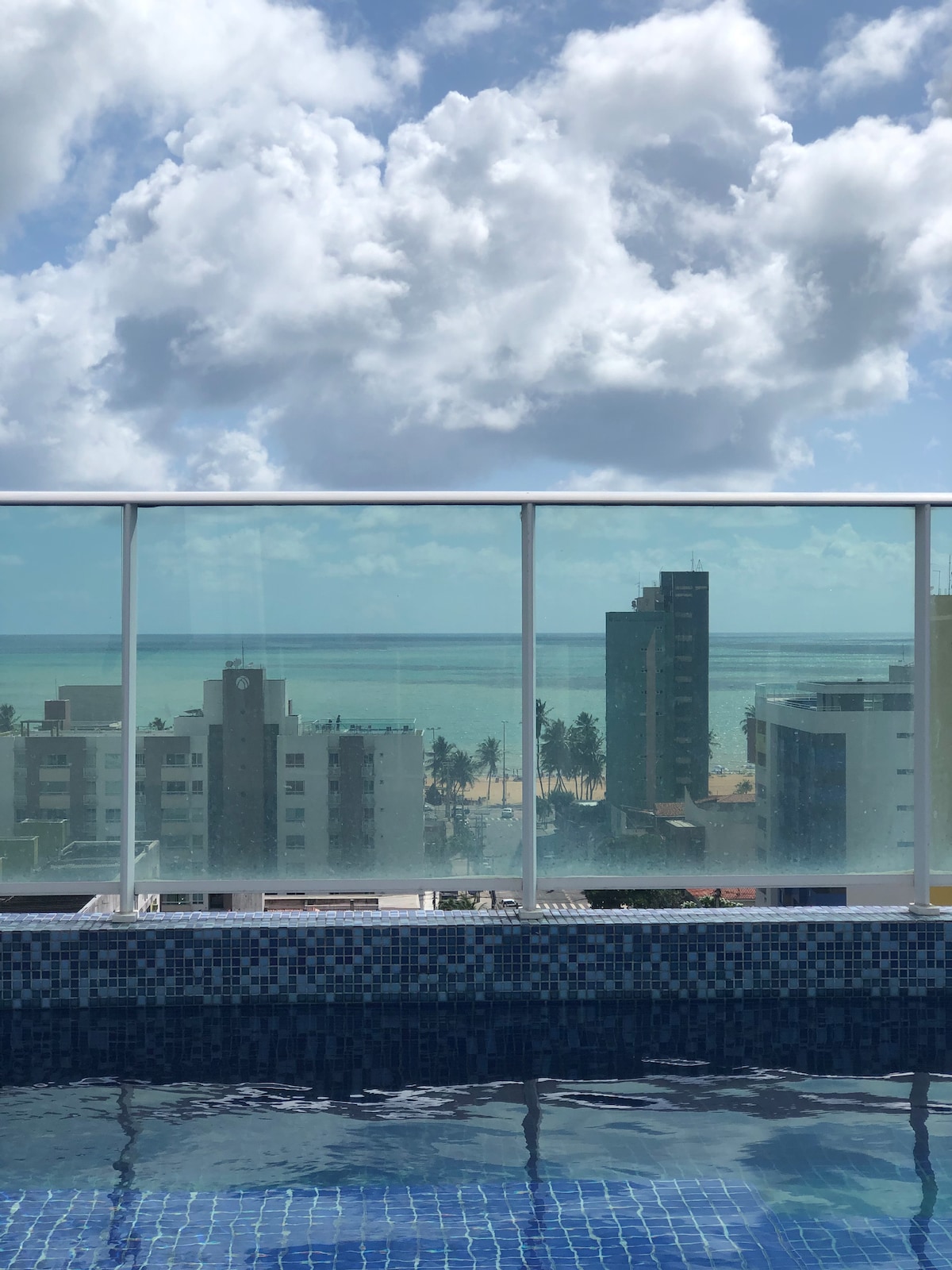 Nuevo apartamento de 44 m² a solo 50 m del mar de Cabo Branco. Jacuzzi privada (sin calefacción), baño amplio, planta baja, sin escaleras. En la azotea: piscina infinita y jacuzzi climatizado, ambas con vista al mar. Incluye ropa de cama completa, cama auxiliar, aire acondicionado, vajilla, SmartTV, frigobar y cafetera Nespresso. El edificio ofrece espacio de coworking, Wi-Fi, gimnasio, recepción 24 h, estacionamiento rotativo y desayuno tipo buffet disponible en el lugar(con costo adicional)