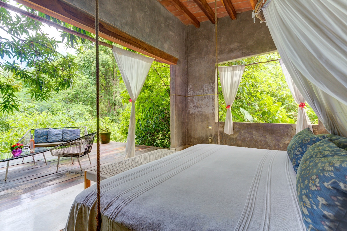 Relájate en una acogedora habitación a solo unos pasos del mar en Quimixto. Equipada con una cómoda cama Queen Size, aire acondicionado, ventilador de piso, caja fuerte y baño privado con amenidades ecológicas, esta habitación tiene todo lo que necesitas para una estancia placentera. Disfruta la tranquilidad del entorno y despierta con la brisa marina en un refugio ideal para descansar. Localizada en Playa El Volador.Acceso solo por Aqua Taxi.
