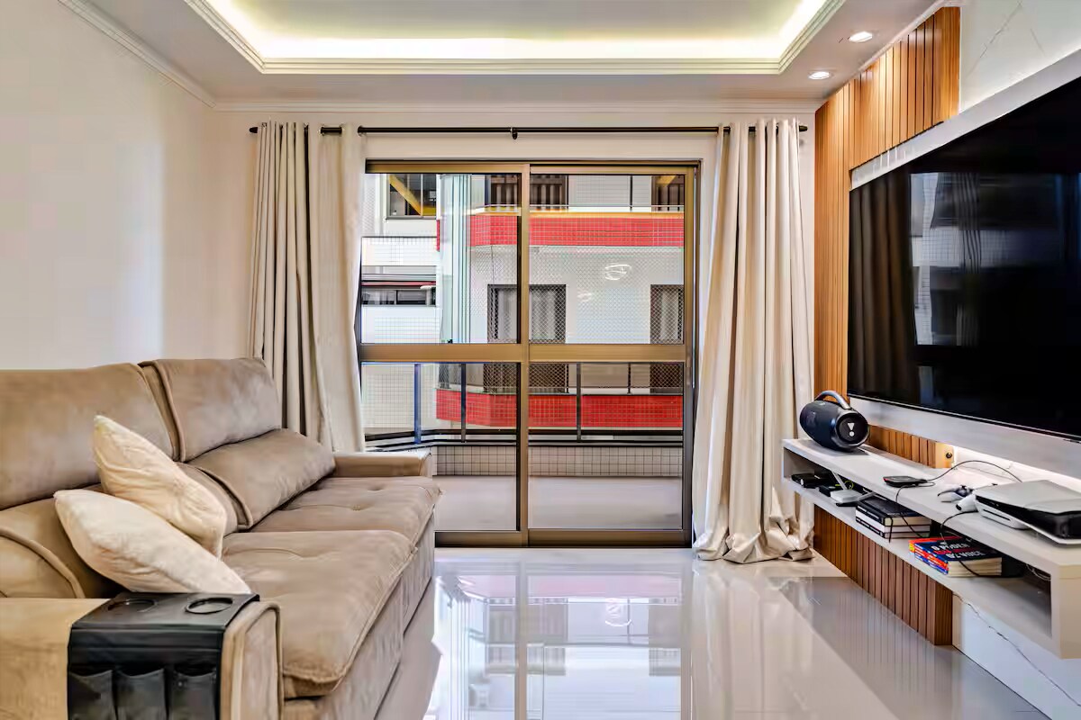 ¡Nuestro alojamiento está diseñado para que tengas mucha comod y practicidad en tu alojamiento! El piso 401 es un apartamento de lujo, con 38 m² que tiene como diferencial un amplio balcón con vista al canal Itajuru. Se encuentra a 100 metros del centro gastronómico con varios restaurantes, bares con música en vivo y a 700 metros de Praia 🏖️ do Forte. Con estacionamiento cubierto incluido en el propio edificio.