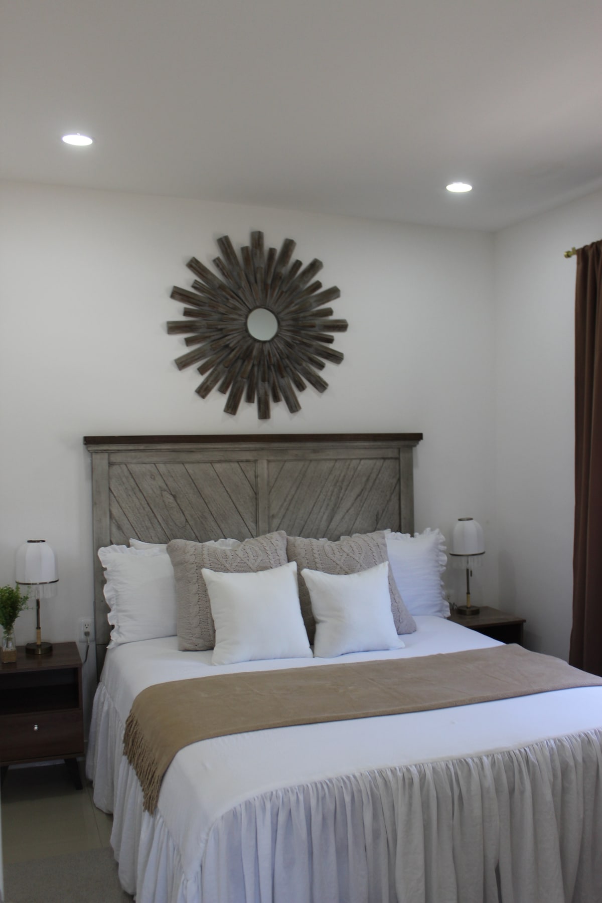 Departamento CENTRICO 2 plantas (escalera interior, recámara 20 metros cuadrados, sanitario, ,cama King Size, 2 sillones y Red Wi Fi : 4G 200 Megas, Youtube ABIERTO. Total Play , 150 Canales de TV (FOX Sport varios, HBO ,UFC ) muchos mas , Agua continúa las 24 has, agua caliente , puerta exterior de fierro con Puerta de madera solida con chapa común , cocina completa, Cafetera, refrigerador, Microondas parqueadero Cercanía con las playas. Buen estado de ánimo del Anfitrión.