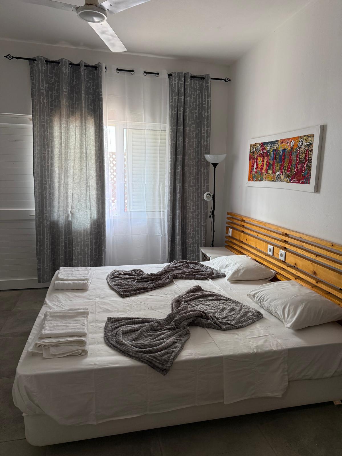 Situado a 200 metros del centro de Sal Rei, a 300 metros de la playa de enfrente, a 400 metros de la playa de Cabral y a 650 metros de la playa de Estoril, el apartamento ofrece la ubicación perfecta para aquellos que quieren explorar las hermosas playas de Sal-Rei y tener fácil acceso a mercados y restaurantes. El apartamento es moderno, está bien equipado, tiene habitaciones amplias y una decoración exquisita con una vista deslumbrante del islote de Sal Rei, las playas de Estoril y Chaves. Habitación suite con armario y balcón con vista al mar.