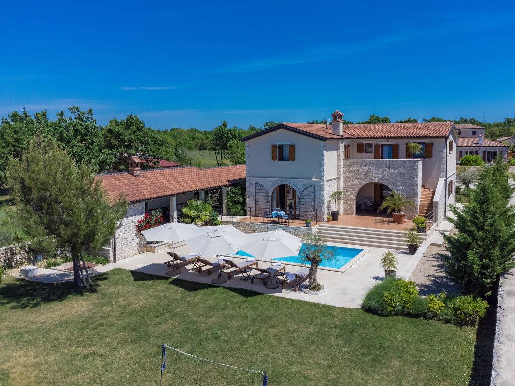 Esta lujosa casa de vacaciones combina la comodidad moderna con el auténtico encanto de Istria, a poca distancia de todas las atracciones de Istria. Construido en parte con piedra tradicional, ofrece calidez y elegancia. Puedes disfrutar de 4 dormitorios en suite, área de bienestar con sauna y jacuzzi, piscina atractiva, cocina al aire libre con parrilla y elegante zona de descanso para relajarte, durante todo el año. Rodeado de vegetación nativa, es un refugio perfecto para aquellos que buscan lujo, tradición y privacidad en un entorno tranquilo.