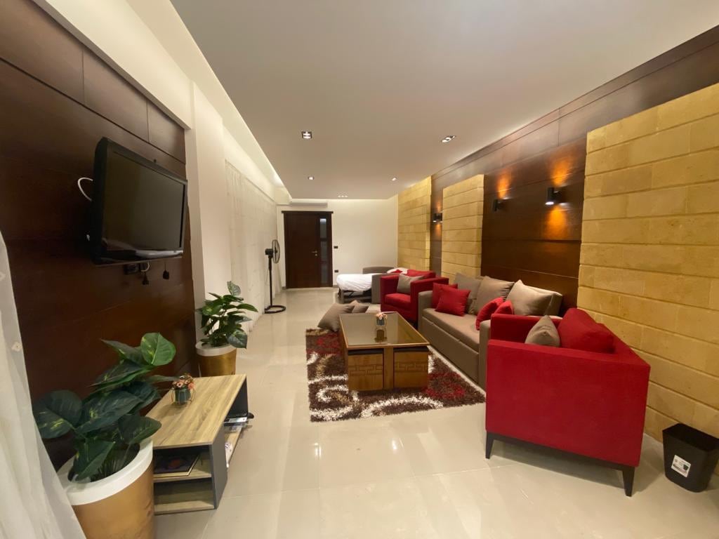 Habitaciones temáticas de diseño minimalista con patio y acceso a la piscina, diseñadas y totalmente amuebladas para satisfacer tus necesidades. Ubicación única con rutas claras y fácil acceso a: - Mercado local (5 min a pie) - Estación de autobuses (5 min a pie) - Centro de la ciudad/Megaciudad comercial del Cairo Festival (a 10 minutos a pie). - Mercado Soudi y centro comercial local de 7 estrellas (a 10 minutos a pie).