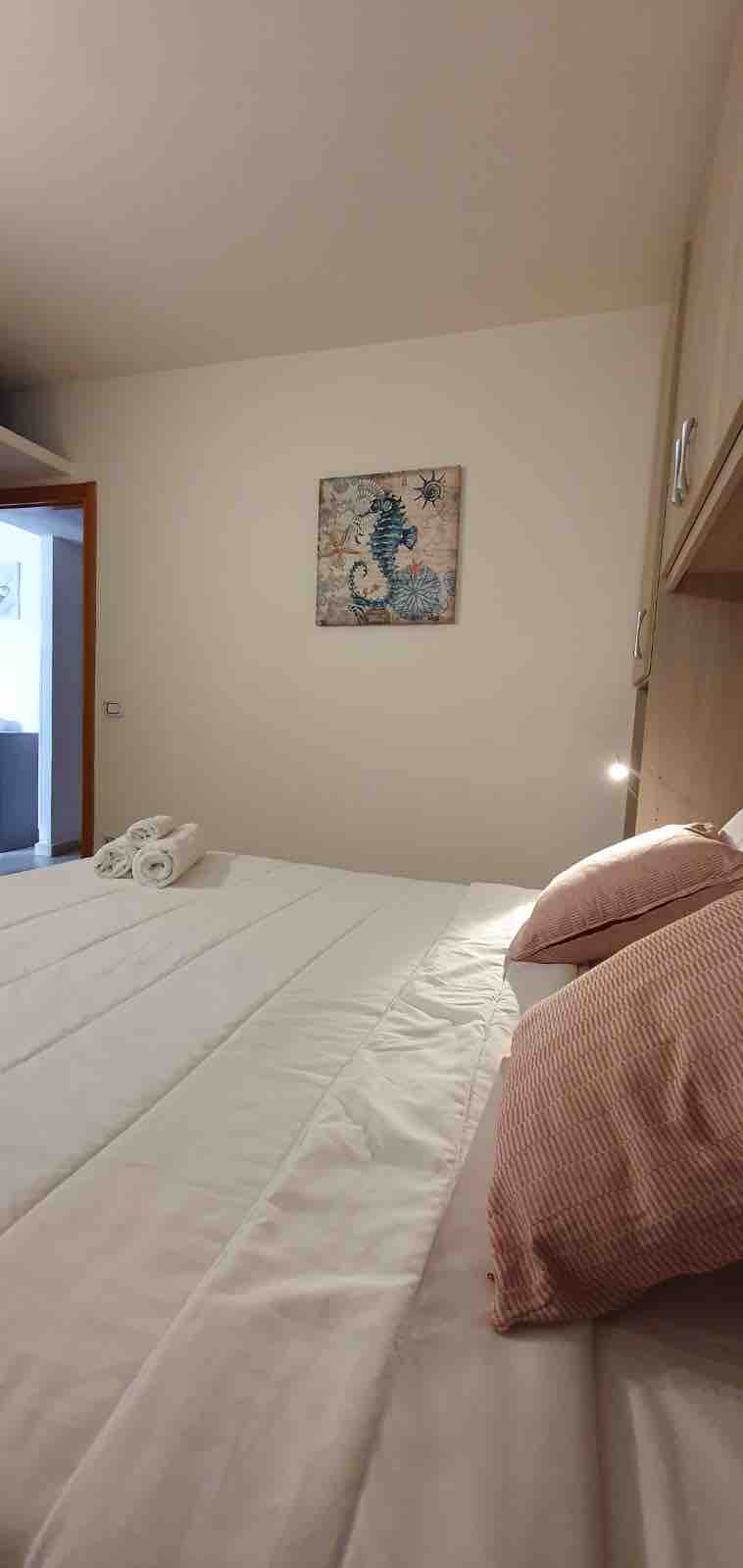 Departamento central completamente renovado para familias con todas las comodidades. Aire acondicionado, lavadora wifi, caja fuerte y ropa de cama incluida. Dos habitaciones. Sala de estar con cocina equipada, televisión y servicio de cortesía. Baño con ducha y secador de pelo. Balcón cubierto equipado con sillas para relajarse. Coches de alquiler y kayak en la agencia Prima Sardegna en el paseo marítimo. Impuesto municipal de 1,50 por persona por noche para pagar en efectivo a la llegada. No hay tarjeta de crédito.