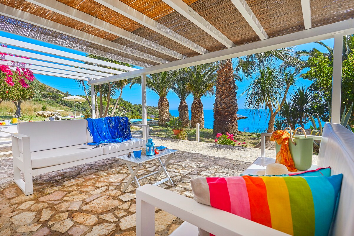 Soggiornerete al piano terra della mia villa a 3 minuti a piedi dal mare, composta da due appartamenti separati. *Non condividerete tutti gli spazi esterni con gli altri ospiti*. L'appartamento gode di un ampio spazio esterno con tavolo da pranzo, divanetti e sdraio, il parcheggio è privato. La villa si trova in una delle aree più suggestive di Scopello, a 200 metri dalla bellissima spiaggia di Cala Mazzo di Sciacca, ed è circondata da un ampio giardino alberato e una suggestiva vista mare