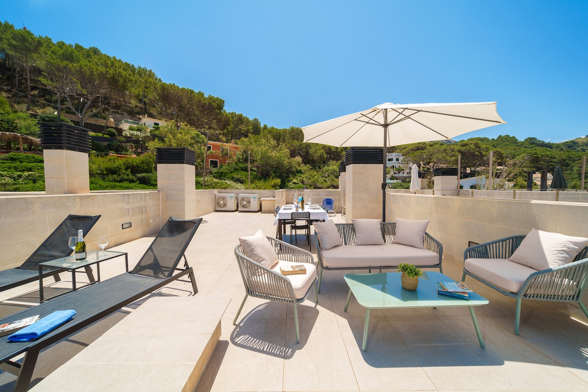 Esta acogedora propiedad forma parte del conjunto residencial Can Botana, situado en Cala Sant Vicenç cerca del encantador pueblo de Pollença al norte de Mallorca. Cuenta con tres terrazas privadas, jardín y acceso a piscina compartida con otras residencias del complejo. A solo 2 minutos a pie se encuentra la preciosa playa de Cala Molins, perfecta para disfrutar en familia del mar, la naturaleza y la tranquilidad del entorno. Es el lugar ideal para unas vacaciones relajadas entre montaña y mar.