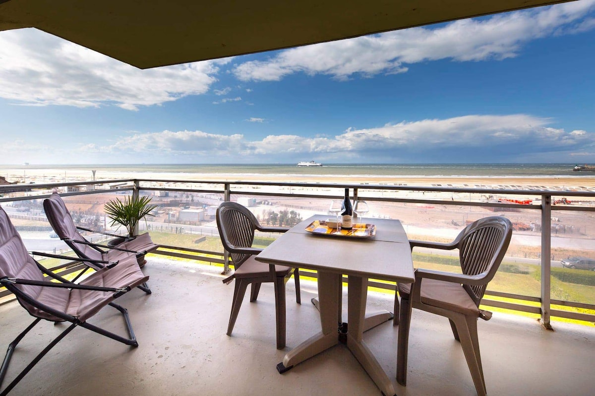 Se alquila apartamento totalmente renovado en la playa de Calais, en el quinto piso, en una residencia tranquila y segura. Ascensor. 1 habitación con vista al mar. Cama de 160 x 200 cm con colchón nuevo. ducha a la italiana. Cocina abierta. Microondas, horno, lavavajillas, Senseo. TV. Wifi. 2 balcones con mesas y sillas, uno de ellos con vista al mar Lavarropas. Secarropas Tabla y plancha Se proporcionan sábanas y toallas. Decoración cuidada. Calais Nord y sus actividades a 5 minutos en auto. Autobús a 25 m de la entrada. La playa, el dique y sus actividades a 50 metros