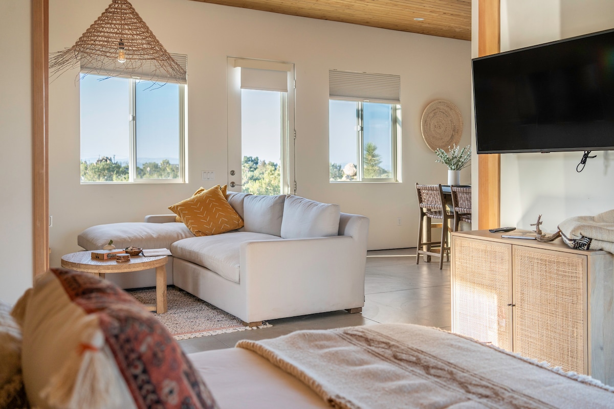 Terra Nova es una casa de 2 dormitorios y 2 baños construida a medida situada en 5 acres de exuberante desierto. Construida en 1986 y completamente rediseñada en 2021, cada centímetro de este moderno refugio ha sido cuidadosamente renovado para traer la naturaleza al interior. Refréscate en la piscina, practica saludos al sol en nuestra terraza de yoga y mira películas bajo las estrellas en el cine al aire libre. Terra Nova es el lugar al que vienes a recargar las pilas, sanar y soñar. IG: @staywterra
