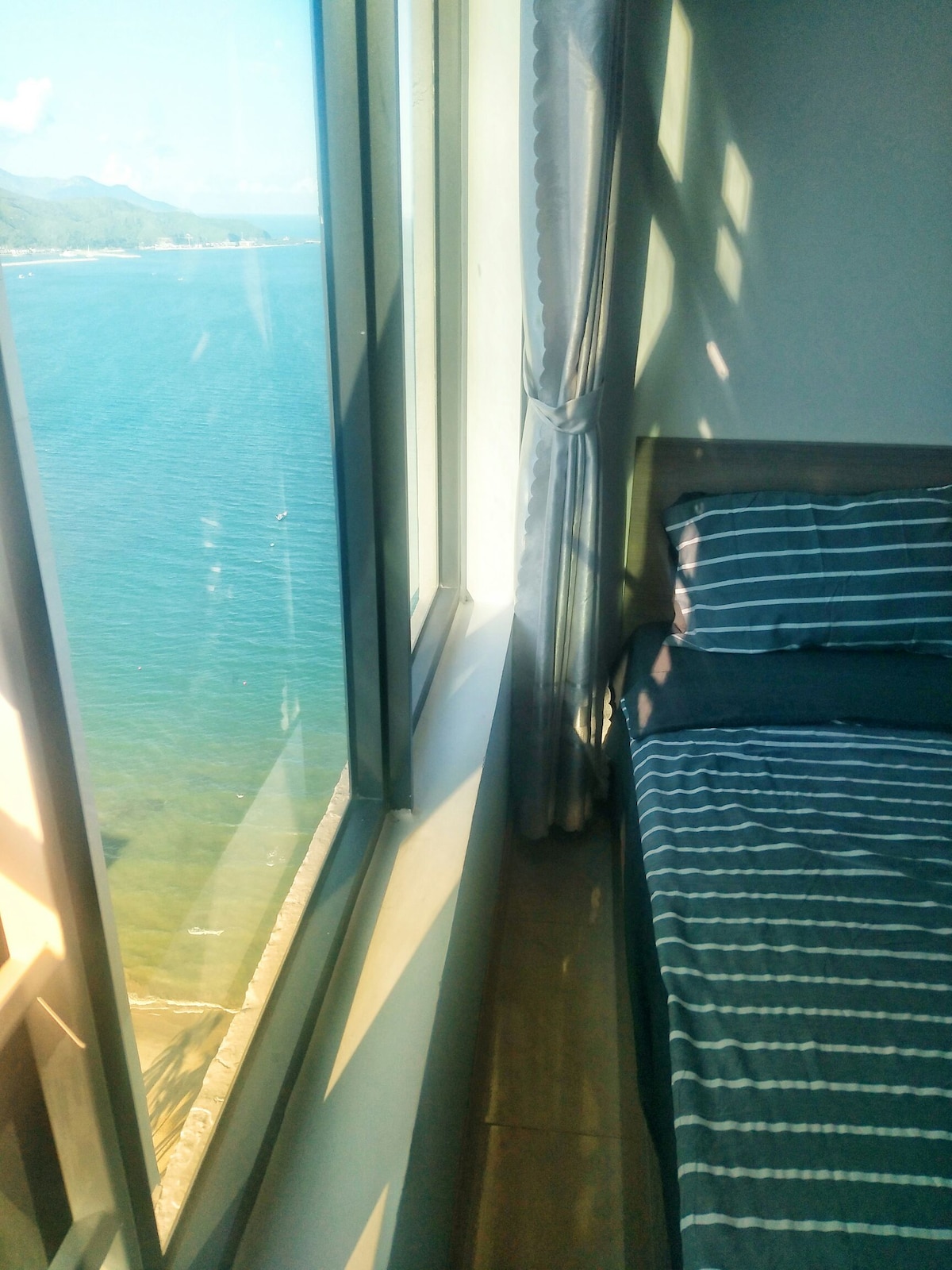 Apartamento de 52 metros cuadrados con vistas al mar y a la ciudad que se encuentra en el centro de la ciudad de Nha Trang y en la parada de autobús del aeropuerto. Este apartamento está dentro de un edificio moderno con centro comercial y está a solo 2 minutos a pie de la playa, cines, supermercados, pubs, mercado nocturno, hoteles de 5 estrellas como Intercontinental, Sheraton, Sunrise... Tenemos muebles completos y cómodos. Realmente maravilloso y disfruta de tus vacaciones con muy buen aire.
