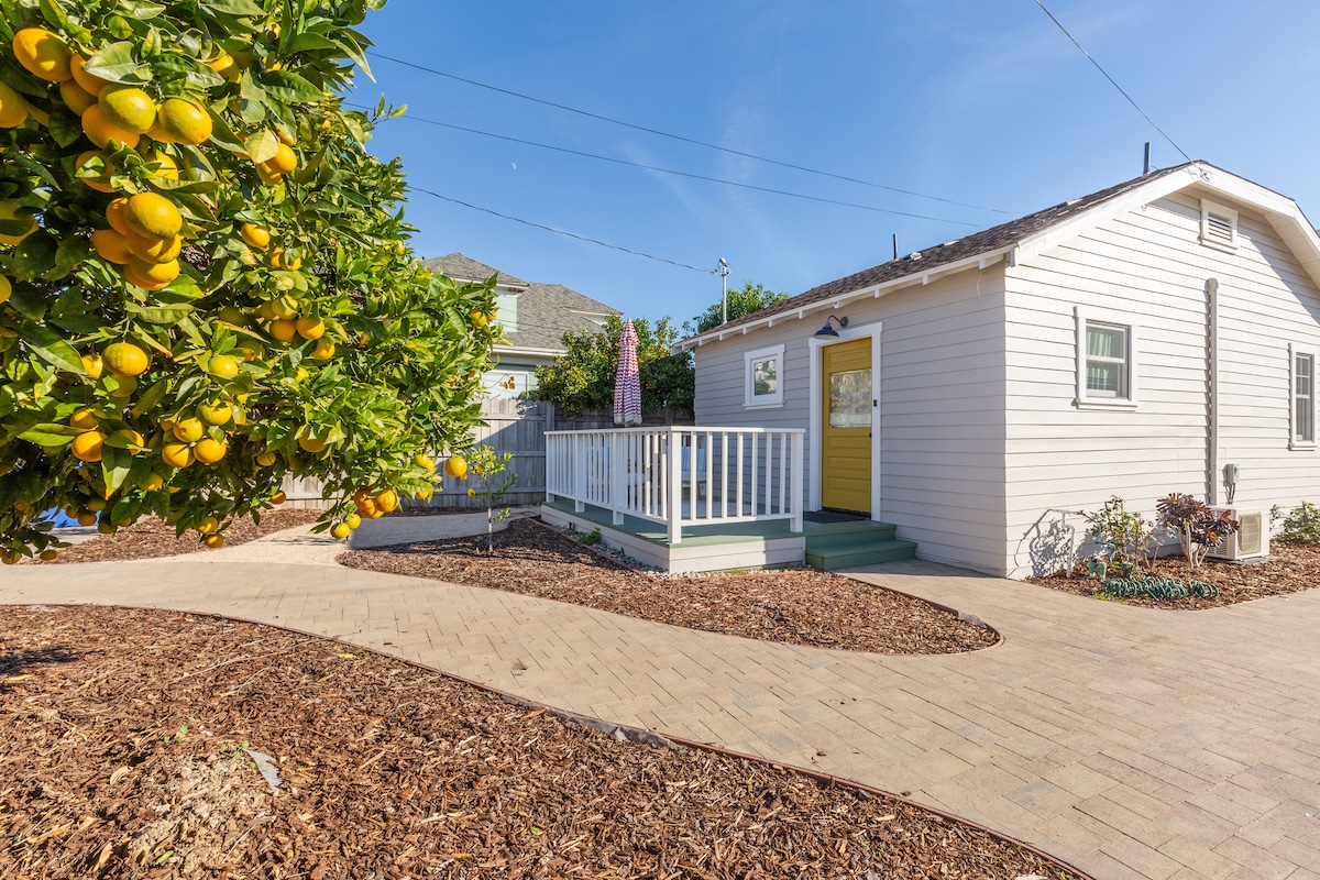 The cottage is located by our orchard, very private w views from every window. Comfortably furnished (Queen bed, couch, desk, armoire, dresser,TV) it comes w a kitchen (incl w/d), bathroom (shower) and a fenced yard to relax. It has a light and airy feel, heating and a/c. Comfortable to get to work or heal or explore SoCal's beaches, mountains, hiking, biking, visit Universal Studios or Santa Barbara a perfect little home to get away for a couple of days, weeks or even months.