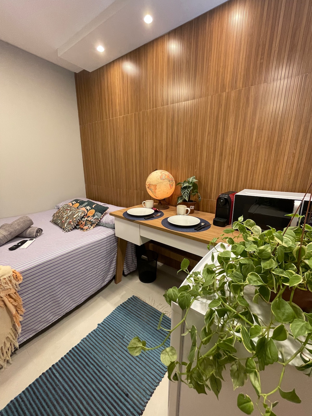 Casa estudio en planta baja en la zona céntrica de Navegantes. Cerca de la playa, tiendas, aeropuerto. Estratégicamente ubicado para aquellos que quieren conocer Beto Carrero (aprox. 10 km), Balneário Camboriú y la región. Fácil acceso desde el aeropuerto (1 km) y la BR 470. Espacio totalmente renovado, impecable para un alojamiento perfecto. El patio/estacionamiento se comparte con otro Airbnb, pero todos los espacios que se muestran en el anuncio son privados.