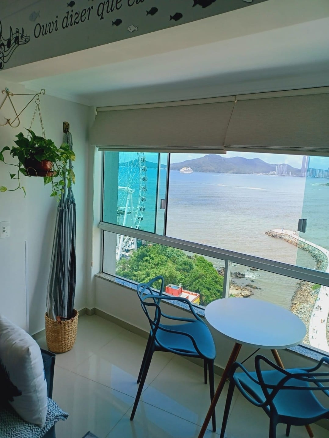 Apartamento muy cómodo y muy espacioso con una hermosa vista al mar desde los dormitorios y la sala de estar. AIRE ACONDICIONADO en todas las habitaciones. Cocina nueva y completa, bien equipada. Excelente ubicación en el CENTRO DE BALNEÁRIO CAMBORIÚ: cerca de centros comerciales, mercados, farmacias y panaderías. Edificio en primera línea de mar (apt. lateral). Una plaza de aparcamiento con opciones para alquilar una plaza extra. Camas, armarios y colchones nuevos. TV de 55 pulgadas e INTERNET WI-FI.
