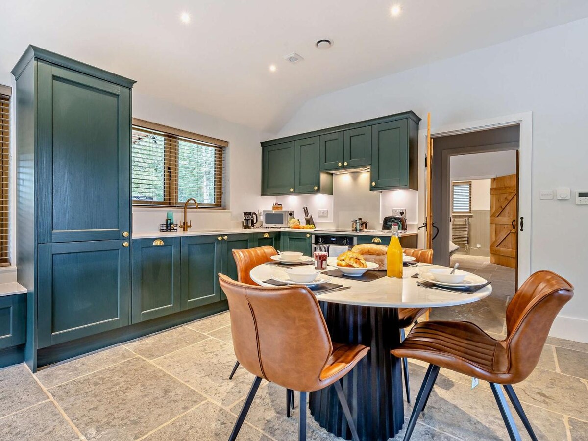 Acogedora cabaña independiente ubicada en un prado aislado en una zona tranquila del pueblo. Con vistas a los campos abiertos, rodeado de encantadores paseos junto al verde de cricket del pueblo. Disfruta de una sala de estar de planta abierta que consta de una cama tamaño king, cómodo sofá cama, comedor con cocina, microondas, nevera/congelador y cafetera Tassimo. La cabaña tiene ducha, inodoro y toallero con calefacción. Disfruta de las delicias del GeoDome, ideal para ver la puesta de sol. Se aceptan perros bajo petición.