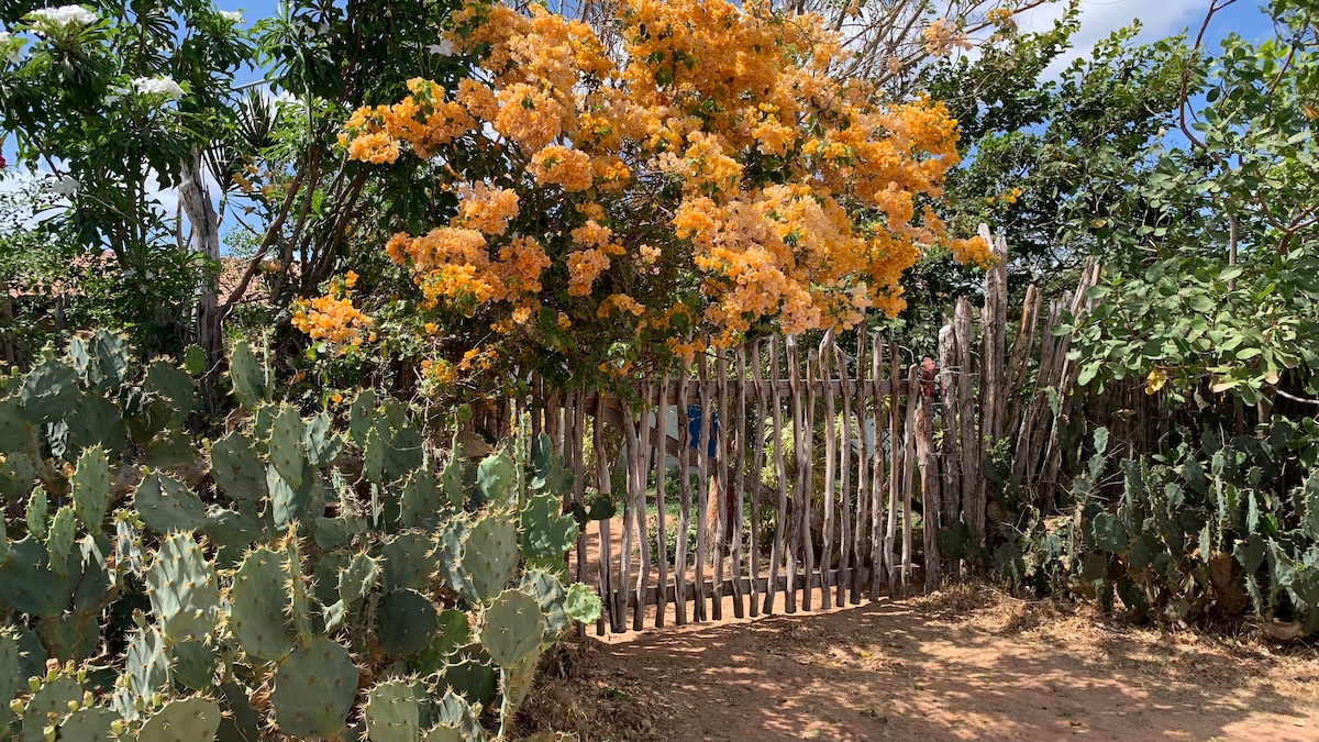 Relájate con toda la familia en este alojamiento tranquilo. Disfruta de una gran zona al aire libre, césped, piscina, ideal para niños y mascotas, así como de la terraza de barbacoa, parrilla, pinchos, una cocina con refrigerador, fogao, microondas, licuadora, sandwichera, ollas, platos, cubiertos, xicaras y vasos, y la comodidad de 3 suites con aire acondicionado para un sueño reparador. Despierta con el viento en la paja de los cocoteros o observa las estrellas después del anochecer y escucha la paz de este lugar.