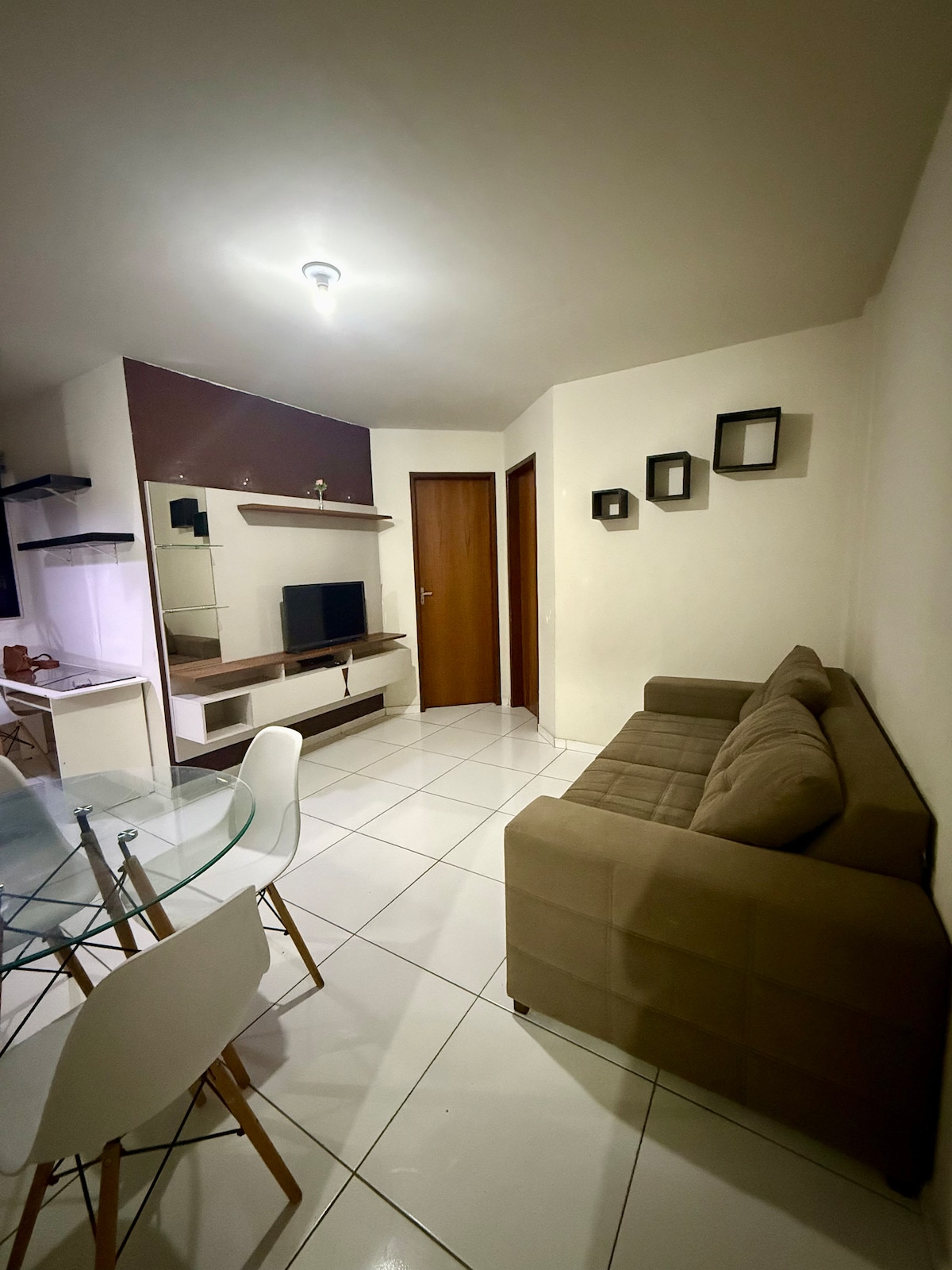 Piso moderno y completo en Heron Marinho, a 500 metros de Partage Shopping y a 7 minutos en auto del Parque do Povo. Ideal para un máximo de 5 personas, el apartamento tiene: • 1 cama super king. • 1 cama individual. • 1 colchón individual adicional. • 1 sofá cama LO más destacable: • Wifi de alta velocidad • Aire acondicionado • Cocina equipada • TV inteligente • 1 plaza de aparcamiento gratuita. • Restaurante aleatorio (desayuno aparte) • Tienda de vinos y clínicas cercanas. • Cargador de vehículos eléctricos.