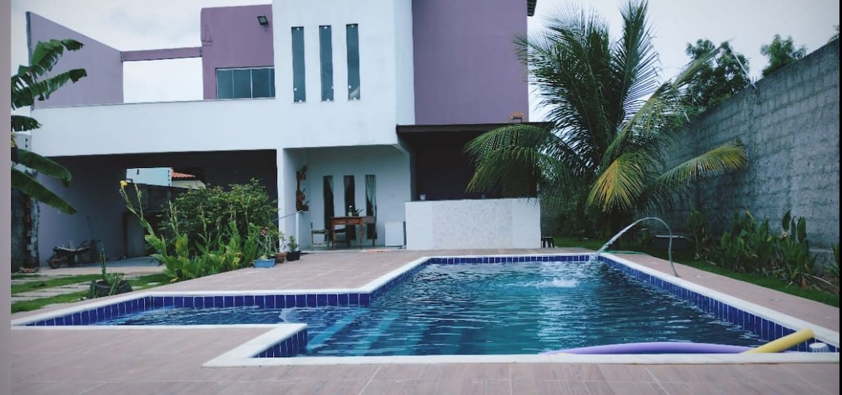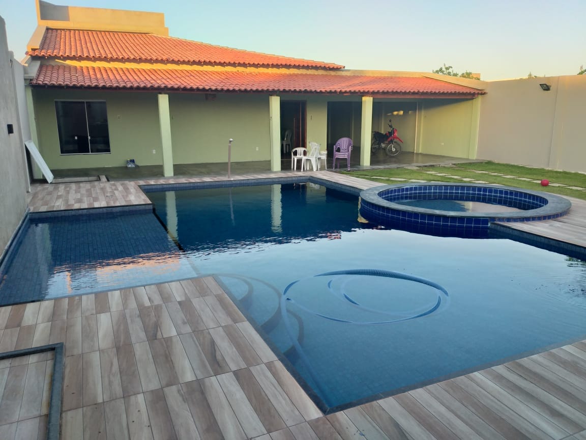 Casa aconchegante para você e sua família desfrutarem das melhores férias e finais de semana, com piscina, área gourmet com churrasqueira, alpendre de frente para o jardim e o pôr-do-sol. Quartos climatizados com ar condicionado split novos e silenciosos. Camas equipadas com espuma de alta qualidade proporcionando maior conforto. Bastante espaço para espalhar seus colchões e fazer a festa!! Garagem para 2 carros. Áreas livres em volta da casa e ganchos para redes. Permitido apenas som ambiente