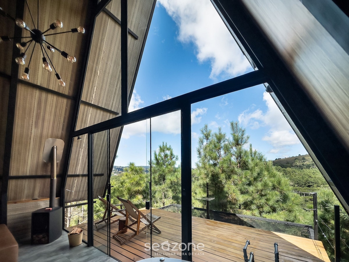 Loft romántico con bañera de inmersión y vistas a la montaña Sky 2 es un loft sofisticado y acogedor, ideal para parejas que quieren disfrutar de la comodidad y la privacidad en medio de la naturaleza. El espacio tiene una suite elegante y bien equipada y en la sala de estar tiene un sofá cama con capacidad para un niño si es necesario. El gran diferencial de Sky 2 es su baño, con una lujosa bañera y una vista increíble de las montañas de los Campos do Jordão.