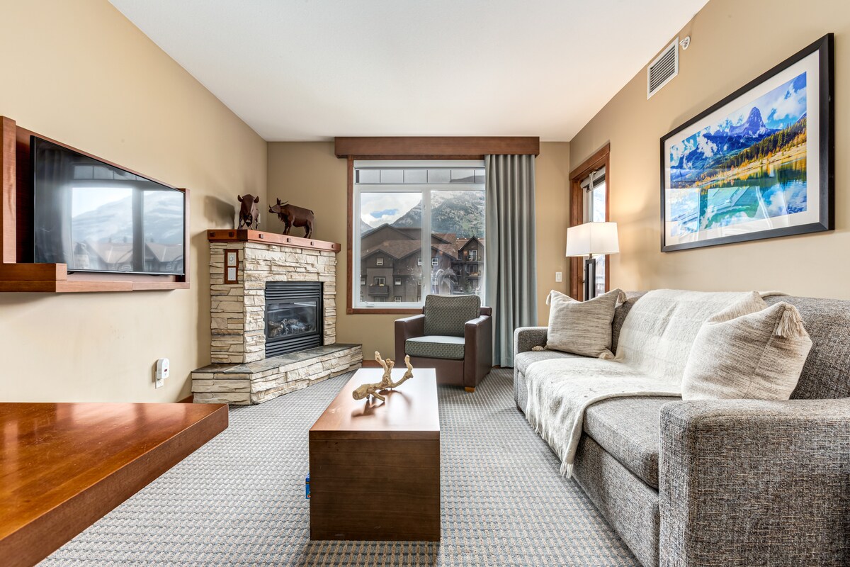 ¡Encantador alquiler de 1 dormitorio con chimenea y vistas a la montaña!