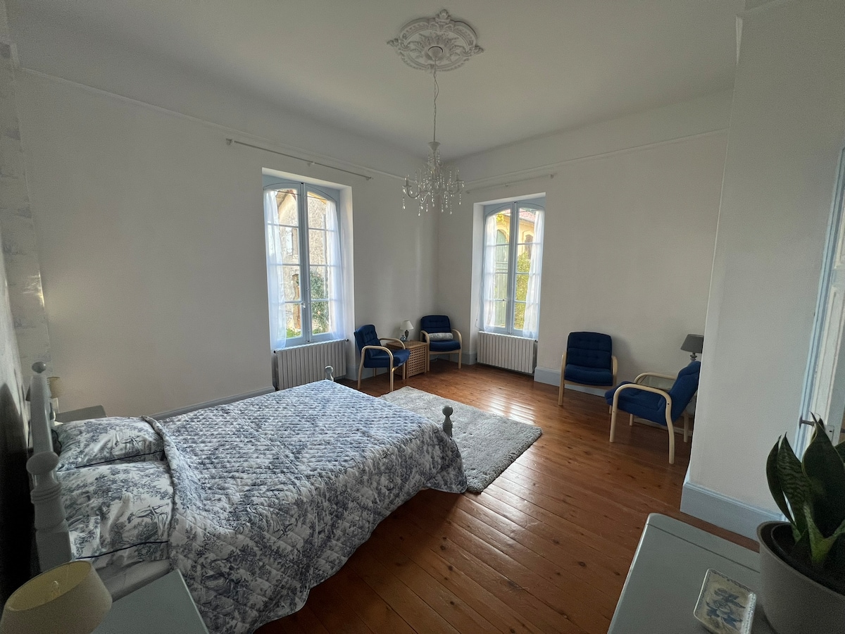 Nuestro alojamiento se encuentra en la ladera de Marmande a 3 minutos en coche del centro y a 2 minutos de un supermercado. Aparcamiento muy amplio. Remanso de paz situado en una granja vinícola del siglo XIX de una sola planta. Adosado a la de los propietarios, este alojamiento sigue siendo muy independiente. Netflix , canal+ , fibra de muy alta velocidad permite el teletrabajo Terraza cubierta ,2 dormitorios , cómodas camas 140, baño , wc , cocina retro con horno Espacio natural libre ,ping pong, piscina ,, animales