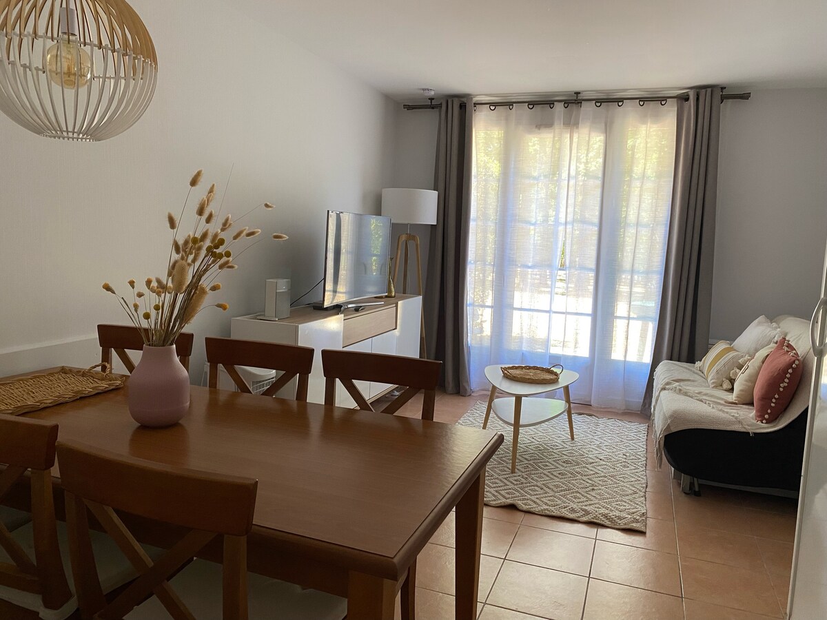 Apartamento totalmente privado. Hermoso espacio verde para descansar Cocina equipada y sofá BZ en la sala de estar Cama King size (160) en la suite principal Amplia terraza de madera con su mobiliario para relajarse. El alojamiento es tranquilo y luminoso, acogedor y zen. Puede hacer una solicitud para una sola noche, se le enviará una oferta especial.