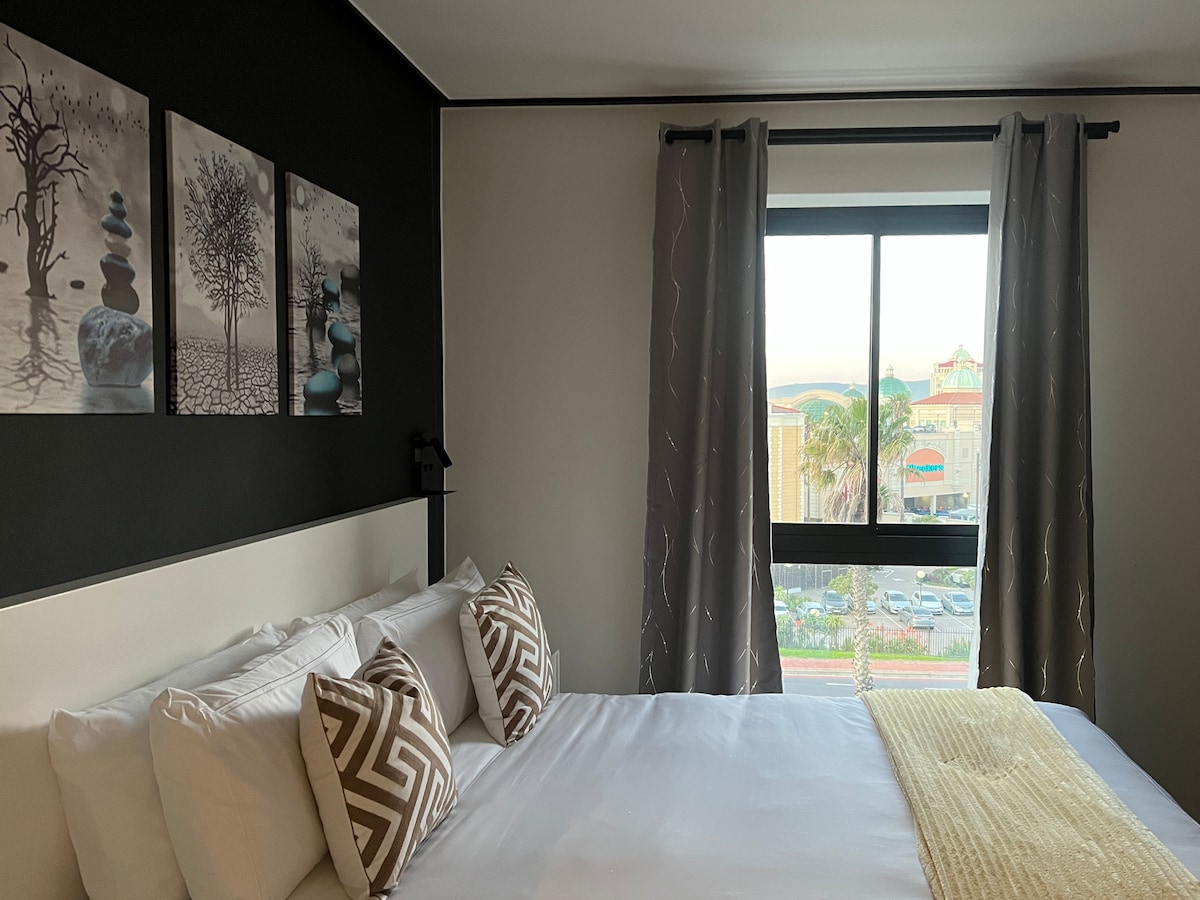 Te damos la bienvenida a nuestra exquisita unidad de un dormitorio con cama tamaño queen de lujo, diseñada exclusivamente para adultos que buscan un refugio de relajación y sofisticación. La unidad está ubicada en el corazón de Century City, a solo 5 minutos a pie de Canal Walk, el centro comercial más grande de Ciudad del Cabo. La unidad en sí está dentro de un complejo de seguridad cerrado con cámaras de vigilancia 24/7 y guardias que patrullan la finca. Serás recibido por impresionantes vistas de la ciudad desde tu dormitorio o balcón.