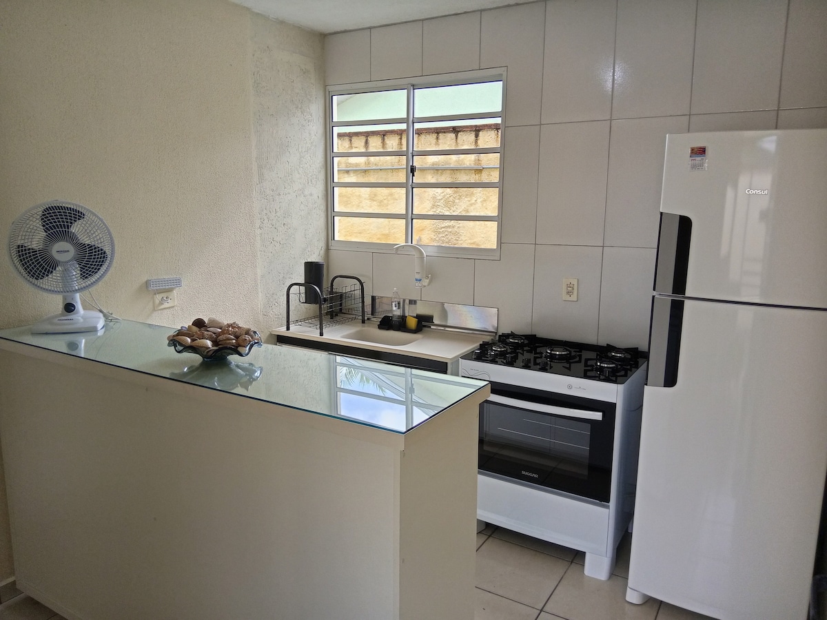 Casa de temporada ideal para días de tranquilidad y descanso para familiares y amigos. Casa con 71 metros cuadrados, sala de estar, cocina, 2 cuartos y baño. Situada en el barrio Nobre de Cananéia, a 900 metros del centro histórico y a 500 metros de la Avenida Independência. Cerca de supermercados, farmacias, bares y restaurantes. Aceptamos mascotas, siempre que informen con antelación su tamaño. El patio y el garaje son compartidos.