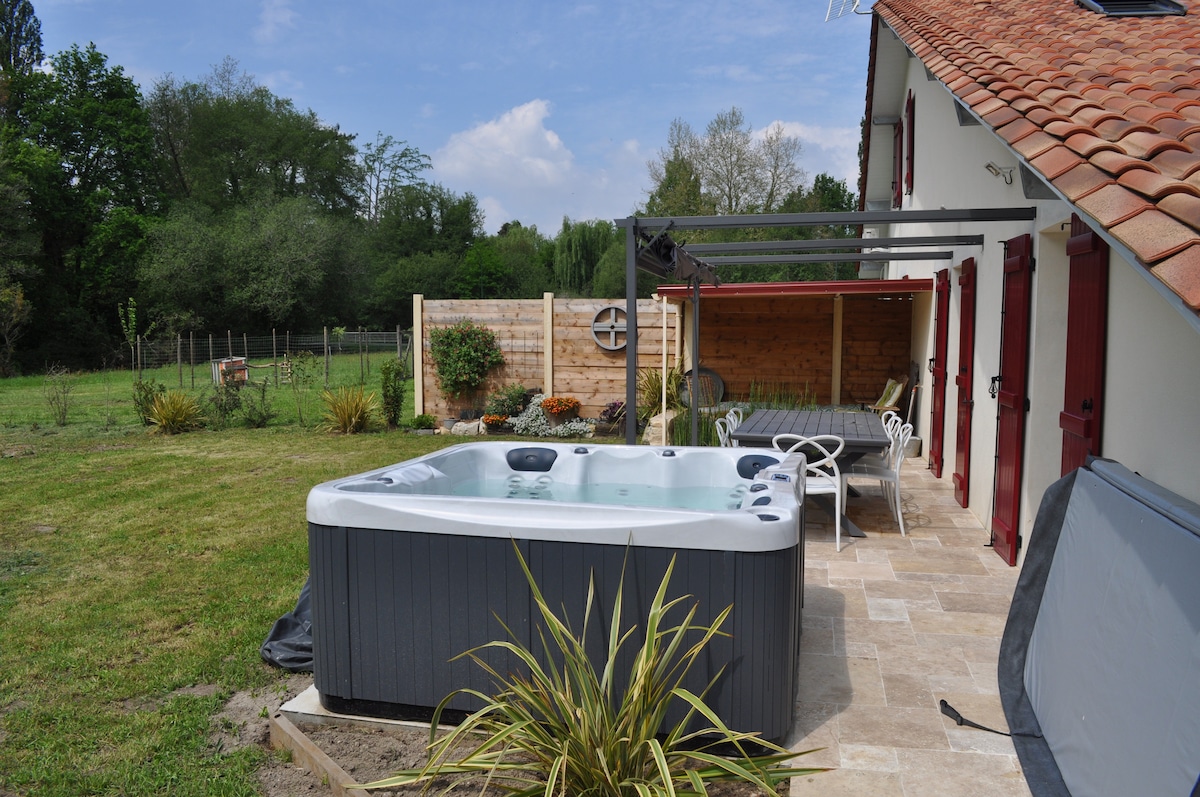 Cálida casa, 10 personas de alto nivel de 200 m2, cerca de Dax y la costa atlántica. Venga a disfrutar de nuestro gran jardín con piscina al aire libre y jacuzzi,climatizado durante el verano,no pasa por alto y una cocina al aire libre.