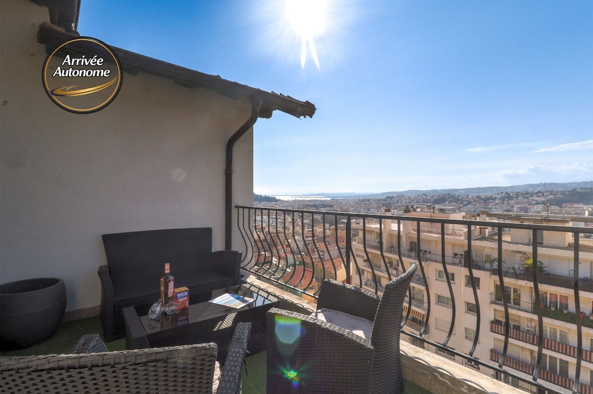 Caroubier, departamento con aire acondicionado, terraza y vistas al mar y a la ciudad