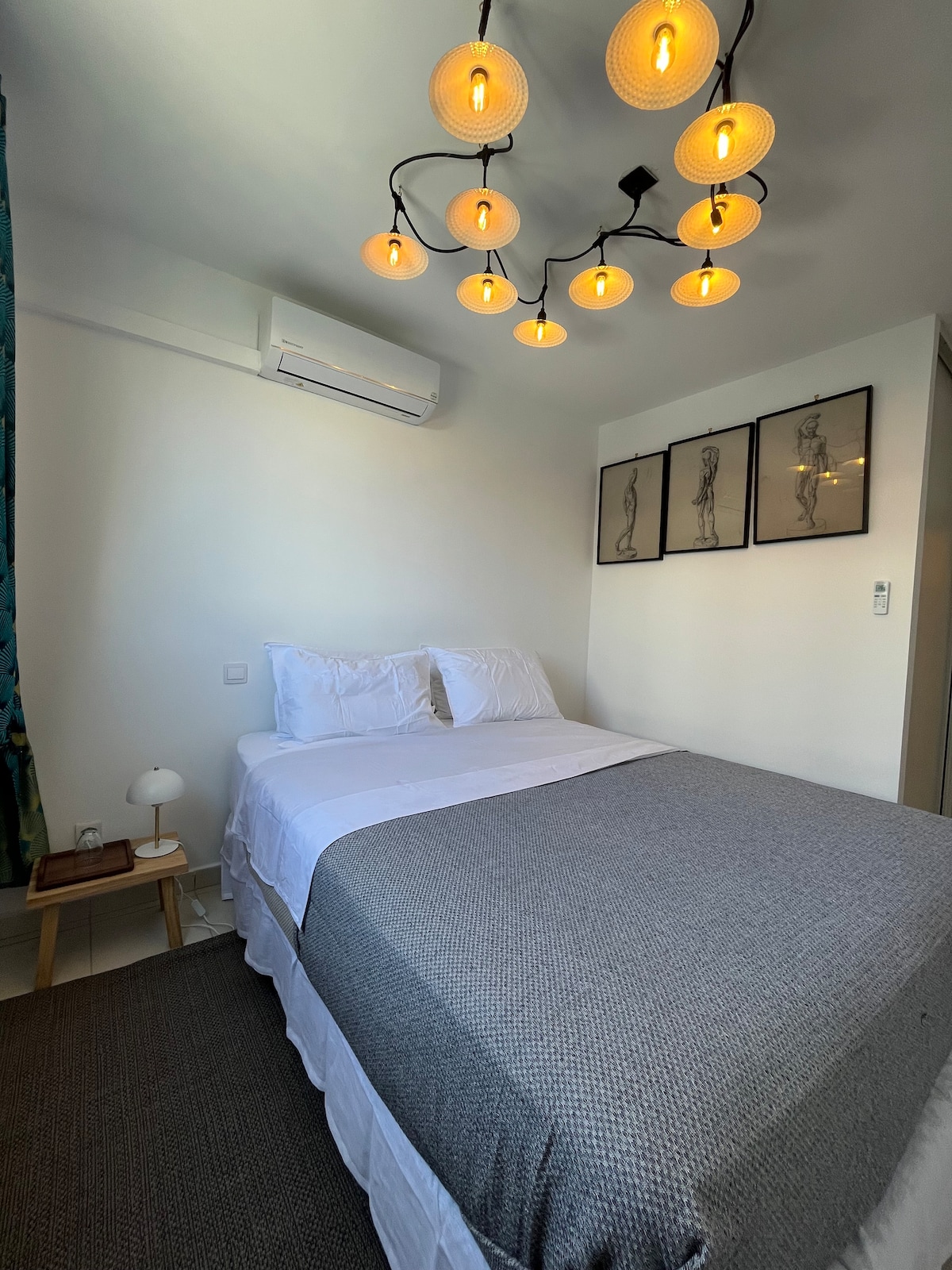 Pequeño estudio confortable, funcional, con aire acondicionado y ventilador, mosquiteros en las aberturas, cerca del centro, cerca del jardín del Estado, 2 personas no fumadoras. Autobús al aeropuerto a 5 minutos. Ideal para GR-R2 Diagonal de los locos. Cama de televisión, Wi-Fi de fibra, pequeño baño, pequeña cocina independiente lavadora, nevera, placa de inducción, airfryer, microondas, tostadora, Nespresso, hervidor de agua ,productos básicos para su llegada. Se proporcionan sábanas y toallas. Estacionamiento gratuito en la calle