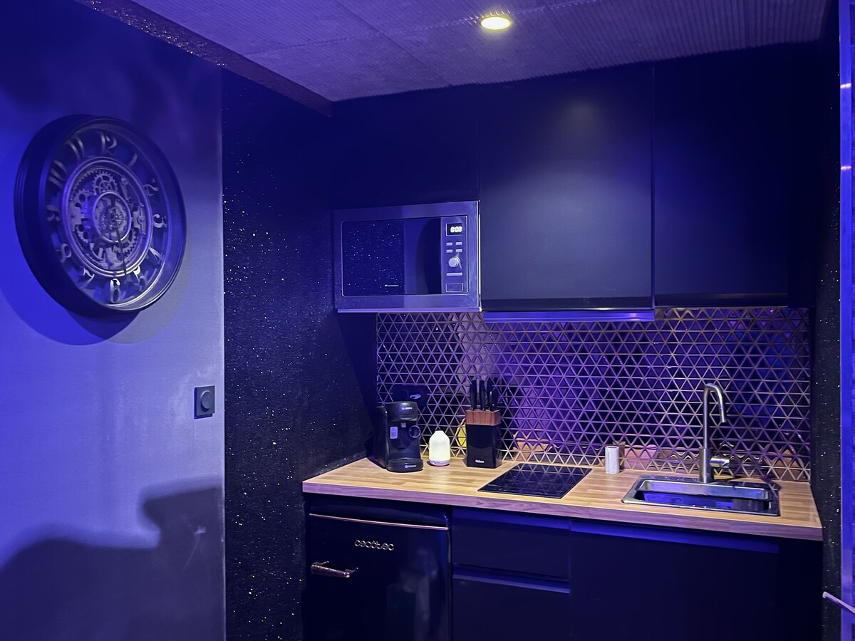 💫 Disfrute de una escapada romántica en Cap d'Agde con spa privado y jardín arbolado❣️ Relájese en su jacuzzi interior con chorros de masaje y cromoterapia, disfrute de una acogedora cama tamaño queen, una terraza para desayunar al aire libre y WiFi de alta velocidad. Residencia tranquila y segura, a dos pasos de las tiendas, playa Richelieu, Aqualand, golf, Île des Loisirs y Amnesia.