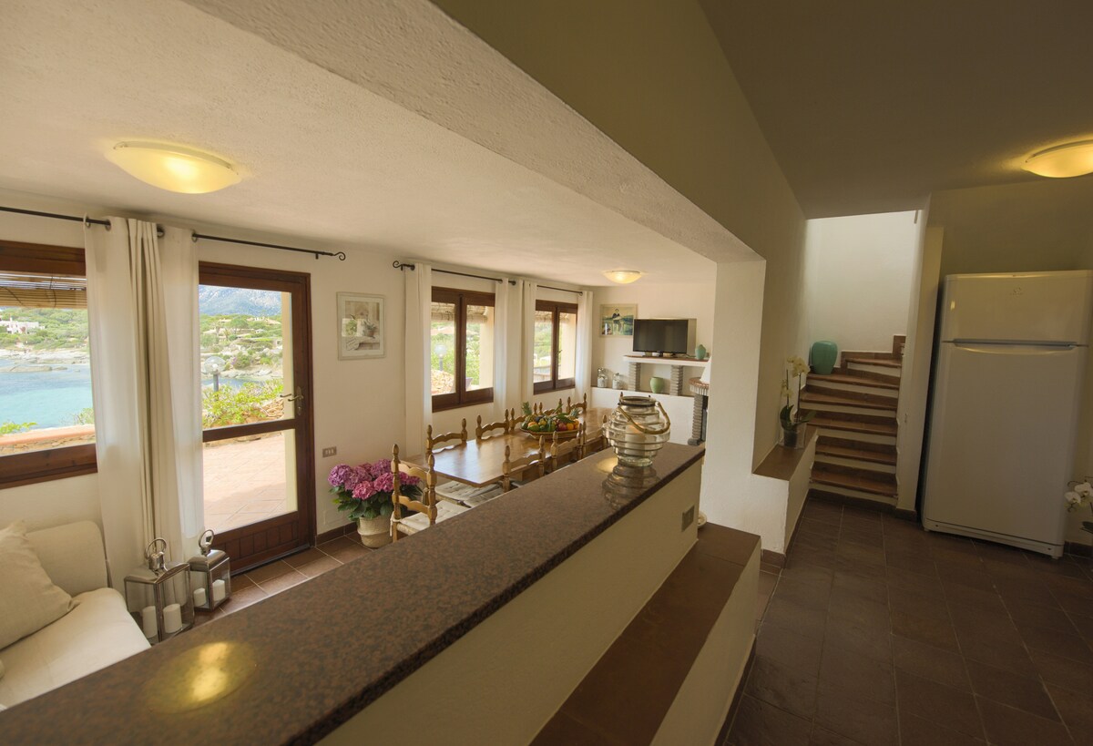 Directamente en el mar con vistas inigualables desde todas las habitaciones, ofrecemos en la planta baja un espacio abierto con sofá, mesa de comedor, cocina, baño, una gran terraza, un dormitorio con una cama individual y una litera. Arriba hay una suite con una cama doble, baño y una fantástica terraza/ático. Fuera de un estacionamiento privado, pérgola con mesa, sillas y ducha. A 30 metros de Porto Luna, a 300 de Is Traias, a 500 de Simius y a 1,5 km del centro de la ciudad.