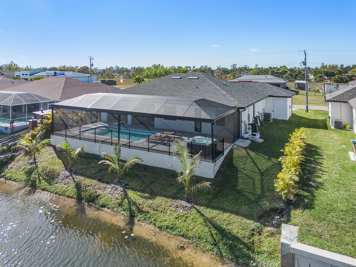 ¿Te gustaría nadar, relajarte al aire libre, pescar y disfrutar de hermosas puestas de sol en un amplio canal de acceso al golfo? Si es así, ¡te enamorarás de esta impresionante casa de nueva construcción hecha a medida! La casa de 2750 pies cuadrados es luminosa y espaciosa, con dos dormitorios principales en suites y un ala familiar separada. ¡La cocina gourmet, el comedor y la gran sala se abren a través de grandes ventanales al lanai y la piscina con vistas al canal en el muy deseado suroeste de Cape! ¡Villa inspirada en la playa! ¡Gran paseo de capitanes y Tiki! ¡Echa un vistazo a nuestras evaluaciones!