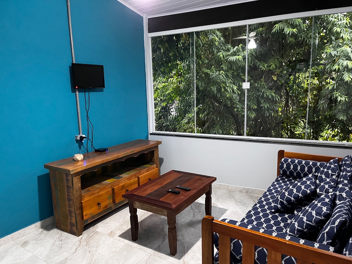 A 180 m (2 cuadras) de la playa Martim de Sá en Caraguá. Pequena pousada con 4 suites independientes y privadas. Estacionamiento interior descubierto y espacio para 1 coche por suite. Baño privado con ducha caliente. Zona de aperitivos con fregadero, microondas, nevera y utensilios básicos. No hay estufa. La suite tiene capacidad para 3 personas (tarifa básica para 2 personas. Se cobra a la tercera persona). Región con bares, restaurantes, quioscos y mercado. Haz todo a pie. Tensión 220v. Enchufes solo 10 A.