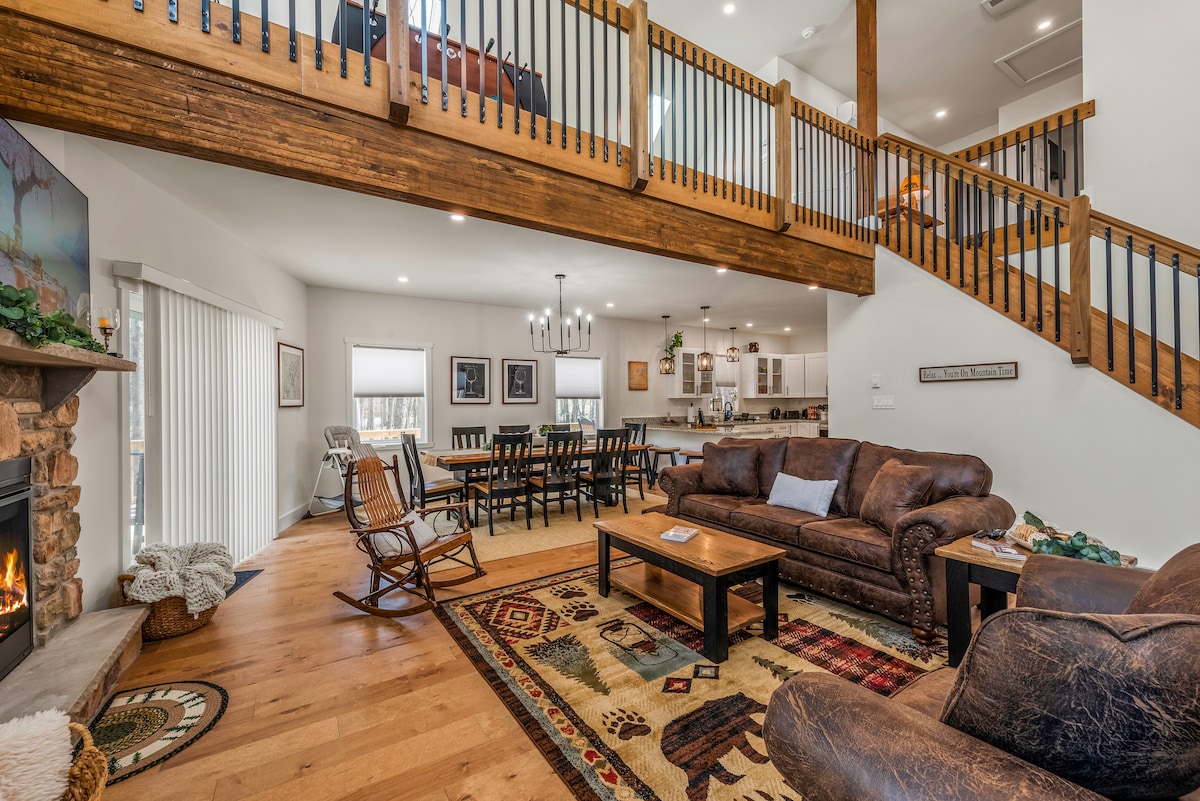 Chickadee Retreat, una encantadora escapada de Poconos enclavada en el bosque. Impresionantes vistas a la montaña y al bosque, con chimeneas y una terraza serena perfecta para el café de la mañana o el vino de la noche. Repleto de diversión, ofrece una sala de juegos, televisores inteligentes, Xbox, juegos de mesa y libros, además de senderismo, esquí y parques acuáticos cercanos, ideales para familias o parejas. Ubicado en una comunidad cerrada segura con llegada autónoma sencilla, este acogedor refugio es tu base ideal para la aventura, la relajación y recuerdos inolvidables.