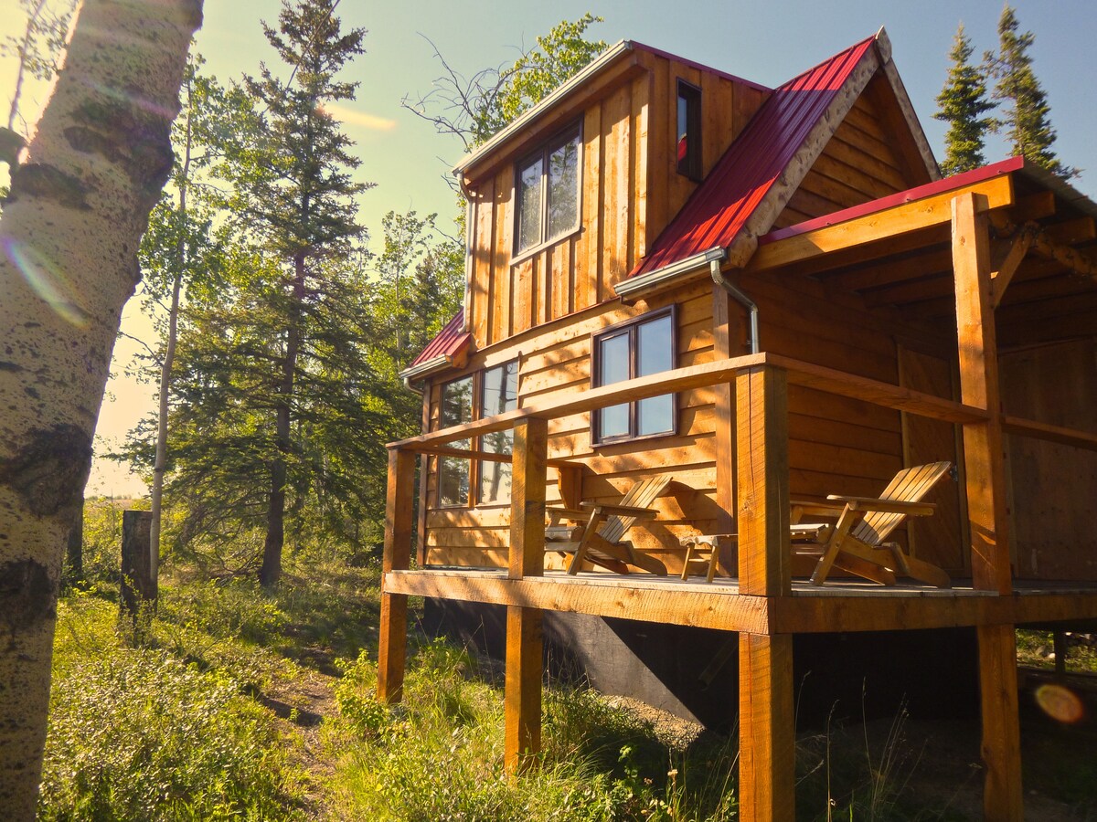 Escápate a 'The Moose', una cabaña rústica de Yukon que ofrece comodidad y encanto opulentos. Perfecto para un refugio acogedor, este espacio cuenta con un piso principal y un área de dormitorio tipo loft. Disfruta de tu terraza privada con una barbacoa y observa las luces del norte. Ubicado a solo 15 minutos de Whitehorse, es una escapada ideal en la naturaleza. Nota: La cabaña no tiene agua corriente; los modernos baños compartidos están a pocos pasos.