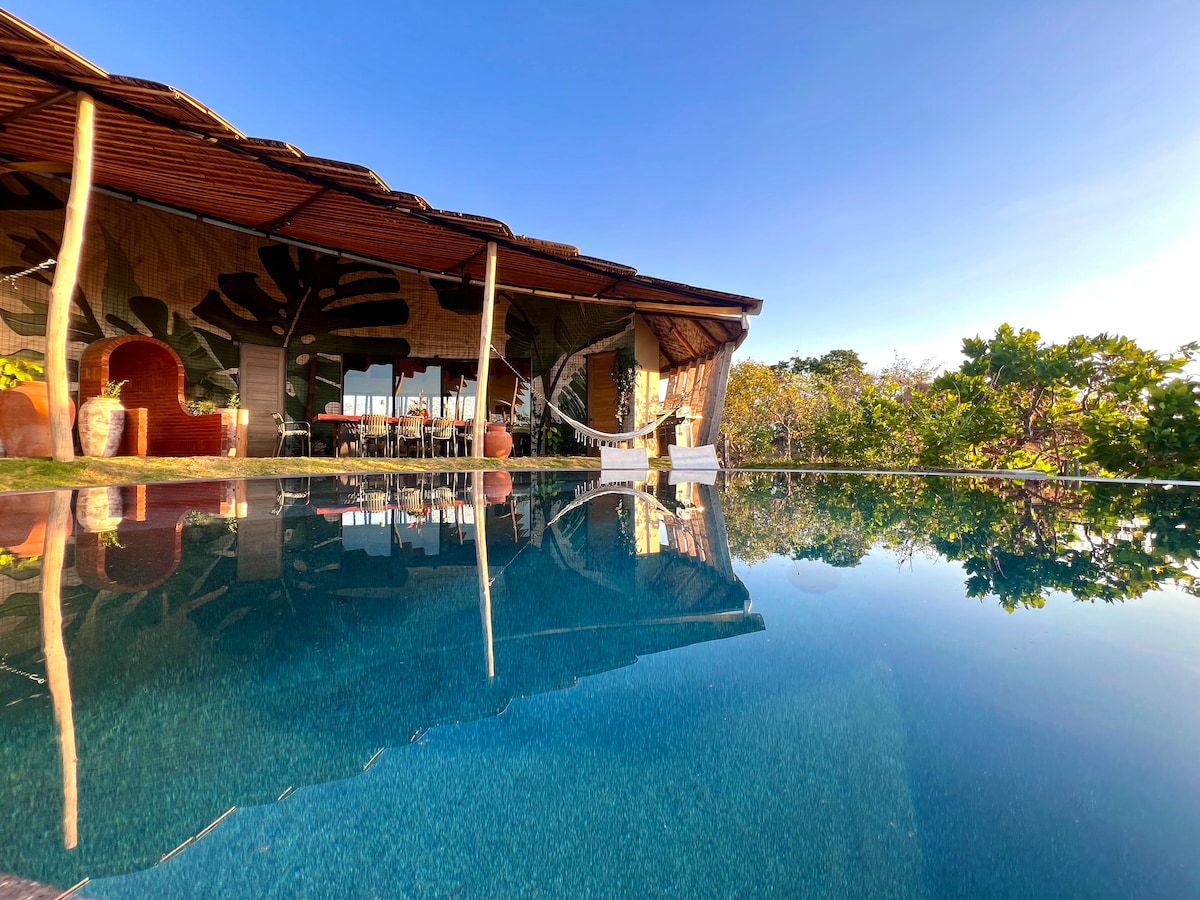 Amplitud, confort, diseño atipico, iluminación natural, vistas impresionantes, construido en bosque tropical de Guanacaste y con practicas sostenibles. Espaciosas habitaciones, cocina totalmente equipada, wifi, piscina, A/C, vistas panorámicas de 360 grados y ambiente relajante. Ubicación privilegiada cerca de hermosas playas y actividades. A solo 8mins de las famosas olas de Playa Grande para surfear y preciosos atardeceres. Exquisito diseño y decoración creado por Gaia Studio Costa Rica.