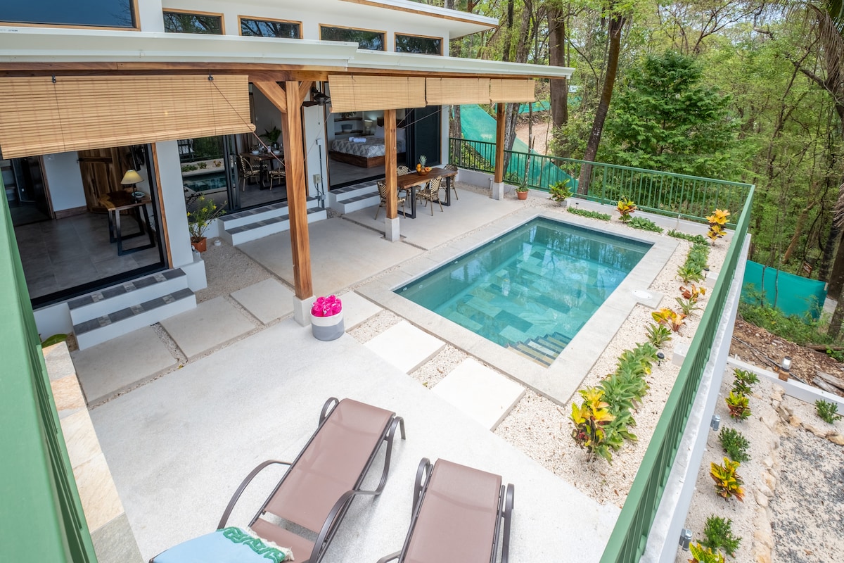 Una suite de lujo privada situada sobre Mal País en la península de Nicoya de Costa Rica. Vistas panorámicas de la costa de Santa Teresa y de la selva desde todos los espacios. Piscina de inmersión con calefacción solar, ducha interior y exterior, cocina gourmet y diseño tropical refinado. Ideal para escapadas románticas, lunas de miel y retiros en solitario. Conectividad de fibra + Starlink. Conserje y chef privado disponibles.