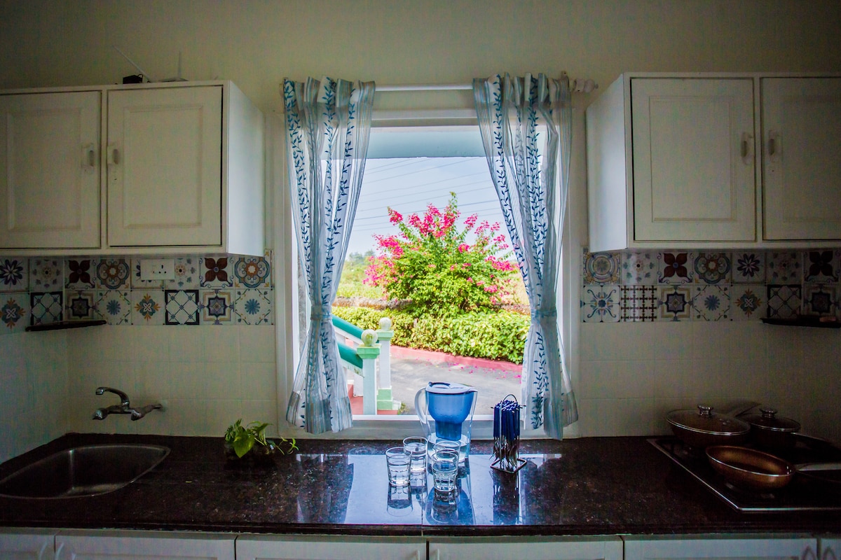 Relájate con amigos o familiares en el tranquilo pueblo de Varca, en el sur de Goa, que alberga una de las playas ocultas y más vírgenes de Goa, Zalor, con arenas blancas, costas limpias y exuberantes campos verdes. Nuestro apartamento es espacioso, con 3 balcones que ofrecen excelentes vistas, bien equipado con todos los electrodomésticos y una cocina totalmente funcional. Puedes preparar una comida en nuestra cocina, disfrutar de las vistas desde nuestro balcón, caminar hasta la playa o simplemente escuchar el sonido de las olas mientras trabajas desde casa utilizando nuestro wifi de alta velocidad.