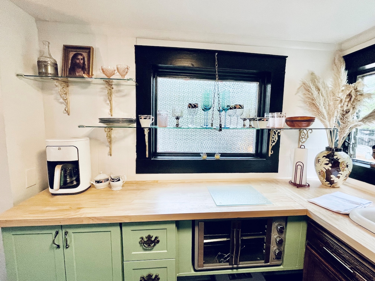 Morning Glory está en la ladera de la montaña, rodeada de bosques. Si nunca te has duchado bajo las estrellas, prepárate para disfrutar de la ducha de cristal. Desde el columpio de tu porche en la cubierta superior del árbol, disfrutarás de halcones que se elevan pacíficamente, pájaros y ardillas mientras charlan, parecen aceptarnos como si fuéramos de ellos. Un hermoso vitral sobre tu cama, decorado con flores negras y rosas. ¡Te va a encantar!